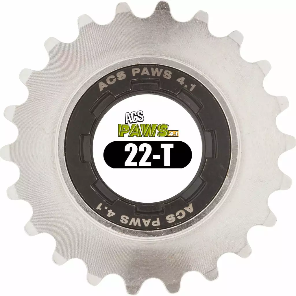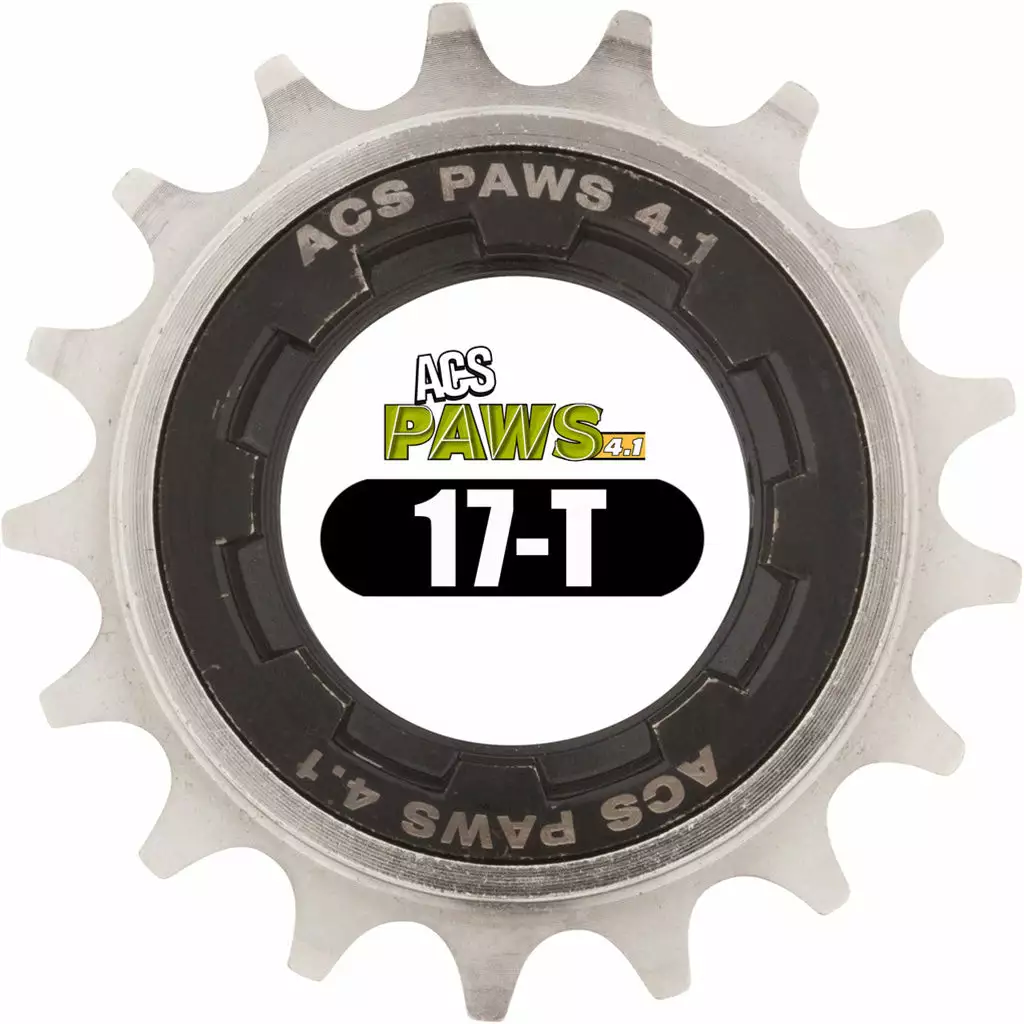 The ACS PAWS 4.1 Freewheel at J&R Bicycles is not just a step up in quality it also hits that sweet spot between excellent durability and affordability. These are the same design as Paws and use a standard 4-prong removal tool. No worries with messing with your axels. Paws 4.1 freewheels are upgraded with a black center ring and nickel-plated sprocket ring. This is the best BMX freewheel available today. Get your paws on it.