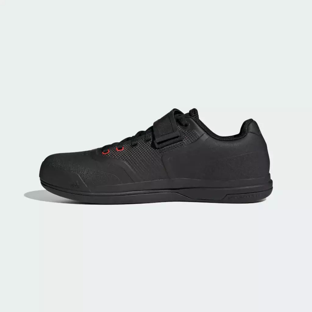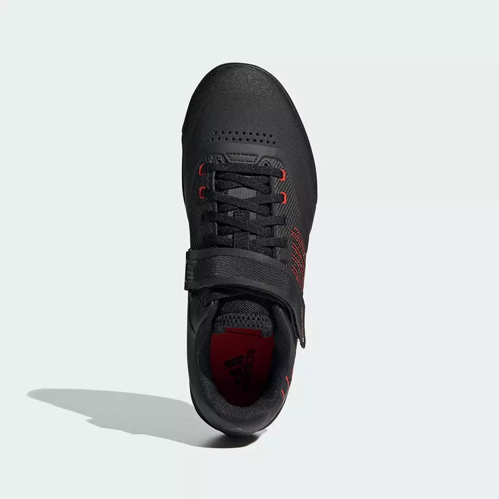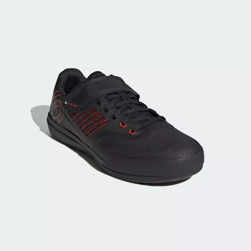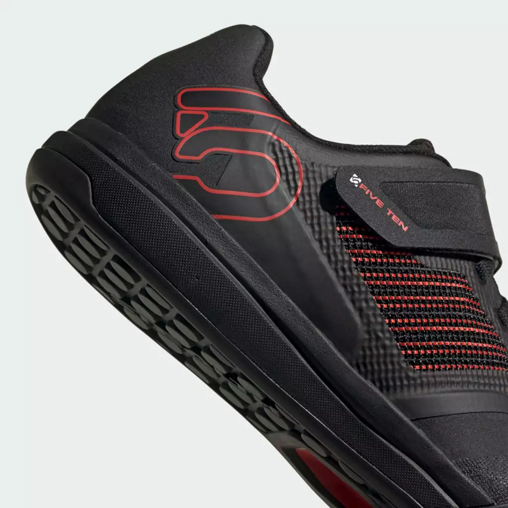 Adidas Five Ten Hellcat Pro Clipless Shoes-Red/Core Black/Core Black feature a nice n stiff midsole to help transfer more of your pedalling efforts into actual bike speed. Features a Stealth Marathon rubber outsole and a molded sockliner. Portions of the upper also contain recycled plastic so you can feel good about youself in helping to make this planet a little less plastic-y.