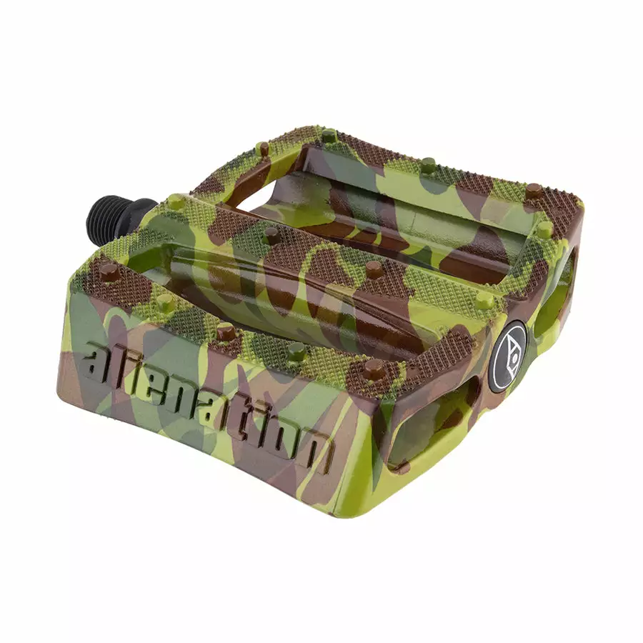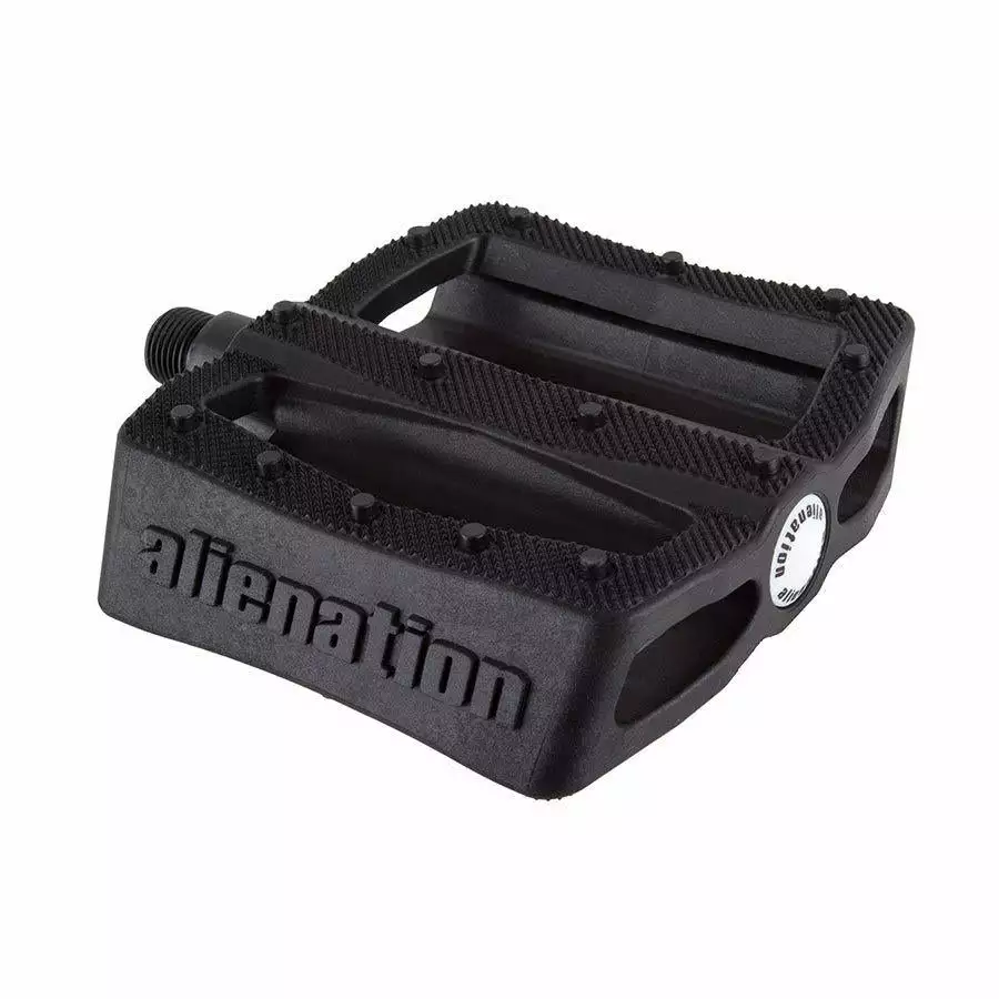 The Alienation Effects Platform Pedals are an easy way to get your bike riding like it used to. These Nylon-Fiber composite pedals have 14 traction pins on each side guaranteeing you’ll have excellent grip when it matters most.
