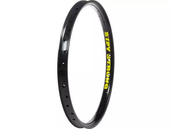 Stay Strong limited edition Alienation Skylark front rim (or rear brakeless). Same great rim that your use to running but with the Stay Strong logos (Yellow on one side and White on the other)