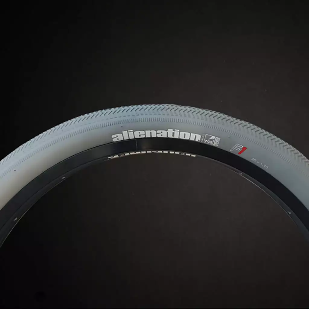 The Alienation TCS F1 Folding Tire-20×1.95″ will not make your bike as fast as a 1000 hp open wheel race car, but it will make you faster than you and your worn-out, old, no-name tires. Featuring a directional tread pattern with a hard compound in the center and a softer outer tread. This tire is meant for use on the front of your BMX race bike. Designed to complement the Alienation TCS R1 rear tire.