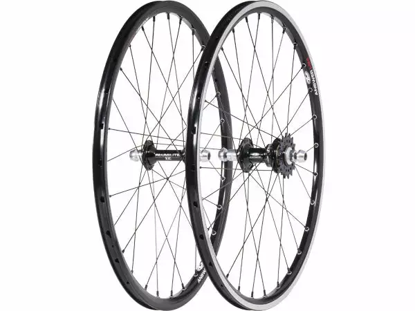 The Answer Alumilite Mini 24″ BMX race wheelset features the Answer sealed bearing Alumilite cassette hub with Magnesium driver, Answer Mini 24 x 1-1/8″ double-wall alloy rims, 15G straight spokes, and alloy nipples.