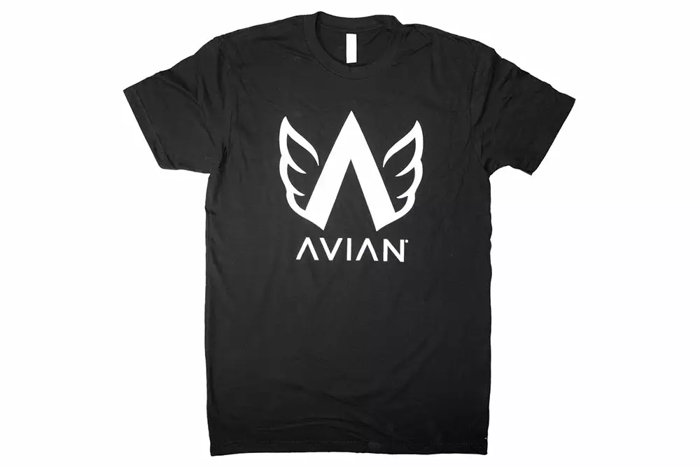 Comfortable and durable Avian Components Tee. Screen printed Wing logo.