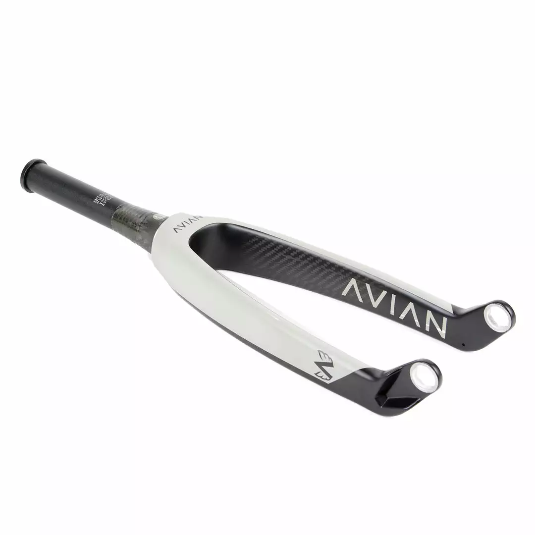 The Avian Versus Tapered Carbon Pro BMX Race 24″ cruiser fork with 20mm dropouts is reliable, efficient, and lightweight. The steerer tube is made of 4mm thick 7005 aluminum and features an internal locking system to eliminate expander plugs & star nuts that often compromise fork strength. The aero carbon fiber legs are made of highly durable Toray fiber and the 20mm alloy drop-outs make the Versus fork one of the stiffest on the market today.