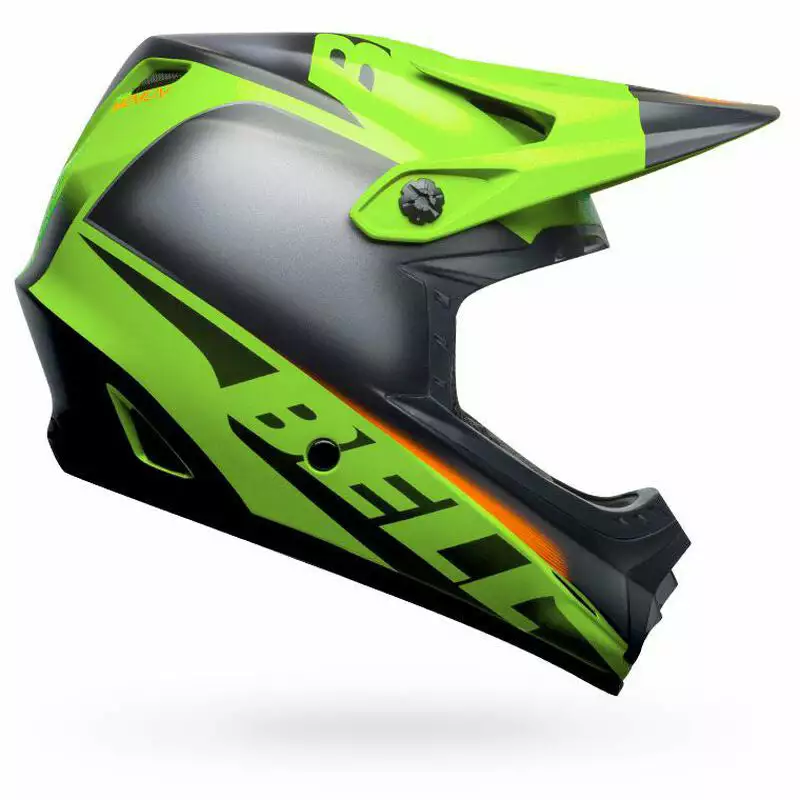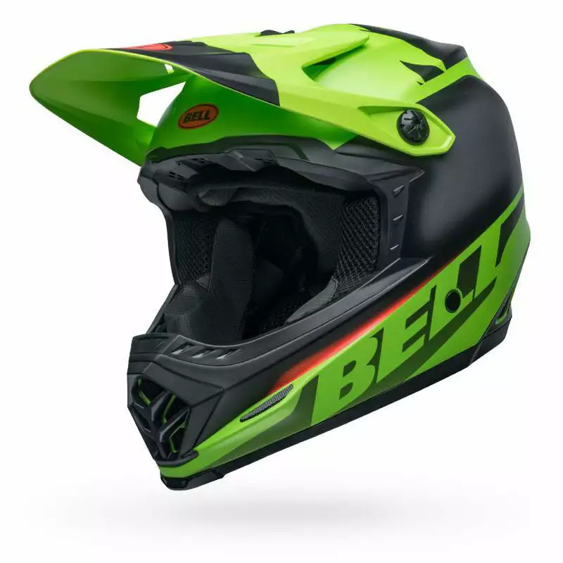 The Bell Full-9 Fusion MIPS Helmet-Matte Green/Black/Crimson features a tough fiberlglass shell and breakaway screws for safety. The visor is fully adjustable even with gloves on. The shell features full size air inlets right under the visor to help channel cooling air right through the padding matrix.