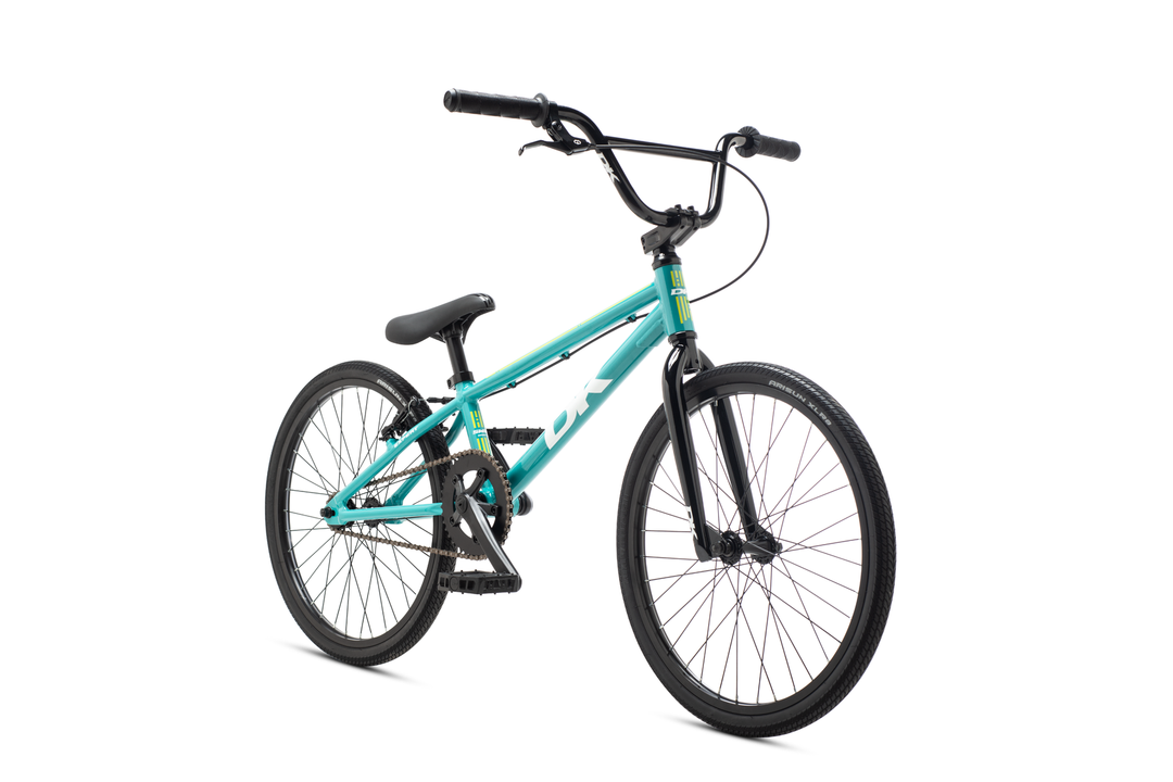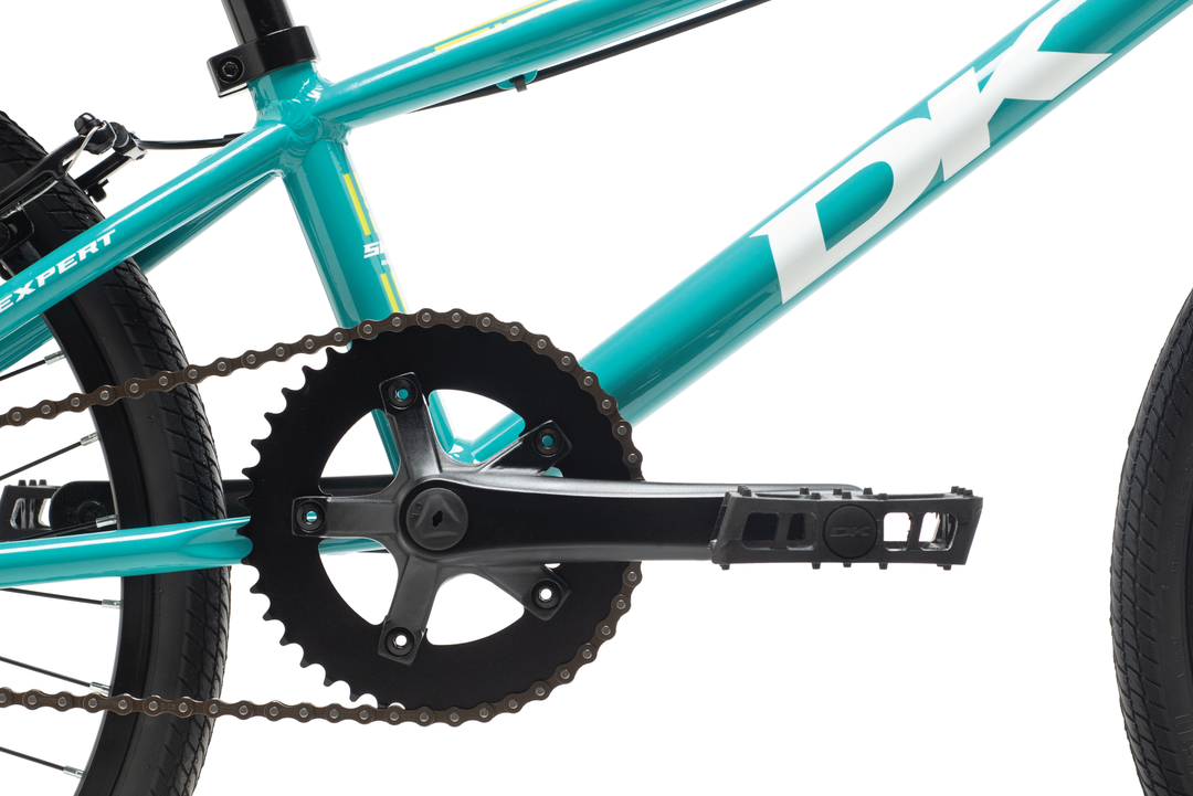 The DK 2021 Swift Expert BMX Racing Bike-Teal is an entry-level ride designed for those ready to take their first steps into the world of BMX racing, but not quite ready to invest in the DK 2021 Sprinter Expert. With a 6061 alloy frame and a modest weight of just 20lbs, there is a lot on offer for such an affordable price. 6.5″ bars and a 19.5″ top tube make this a great size up from the Junior your little racer’s been shredding.