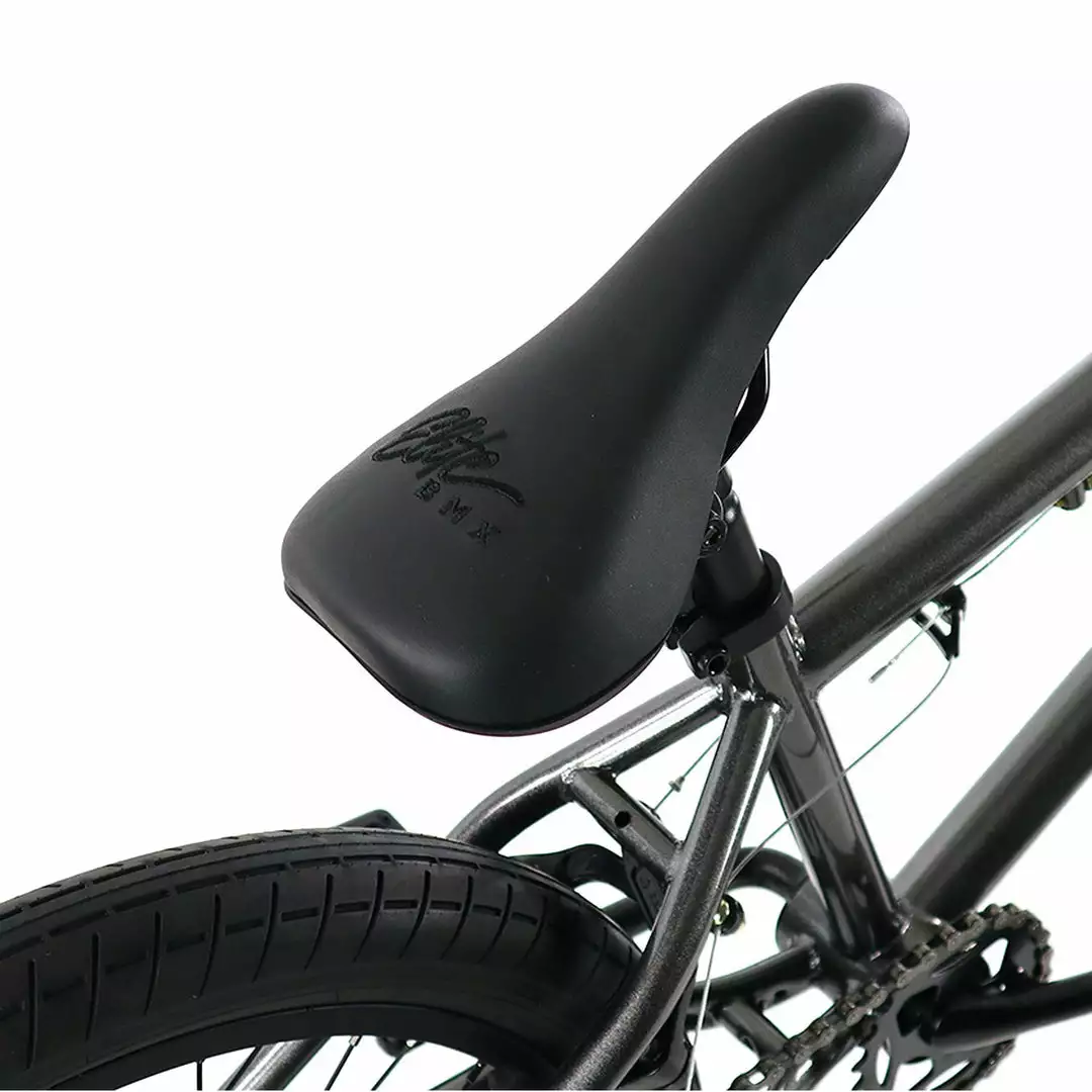 The Elite BMX Stealth 20″TT BMX Freestyle Bike-Gunmetal Grey is the perfect “on a budget” complete freestyle bike. Show up to the park on a bike that you will not be embarrassed to be seen riding. Comes with an Elite Stealth alloy top load stem, freestyle specific 25-9 gearing, 2.5” street tires, and high strength pegs so you can grind for days…weeks…months!