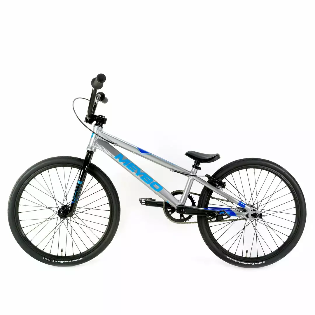 The Meybo Clipper Expert BMX Race Bike-Grey/Blue/Cyan is the budget minded sibling to Meybo’s race winning Holeshot model. Keeping it in the family, the two model’s frames share the exact same geometry. You guys look SO alike! Clearly what sets the Clipper apart is the accessible price point for what is, let’s be honest, an incredible bike. Features a bunch of SD Components. The fork, stem, handlebars, seat, crankset…all from SD. Race ready Tioga Powerblock tires provide a solid bike-track interface.