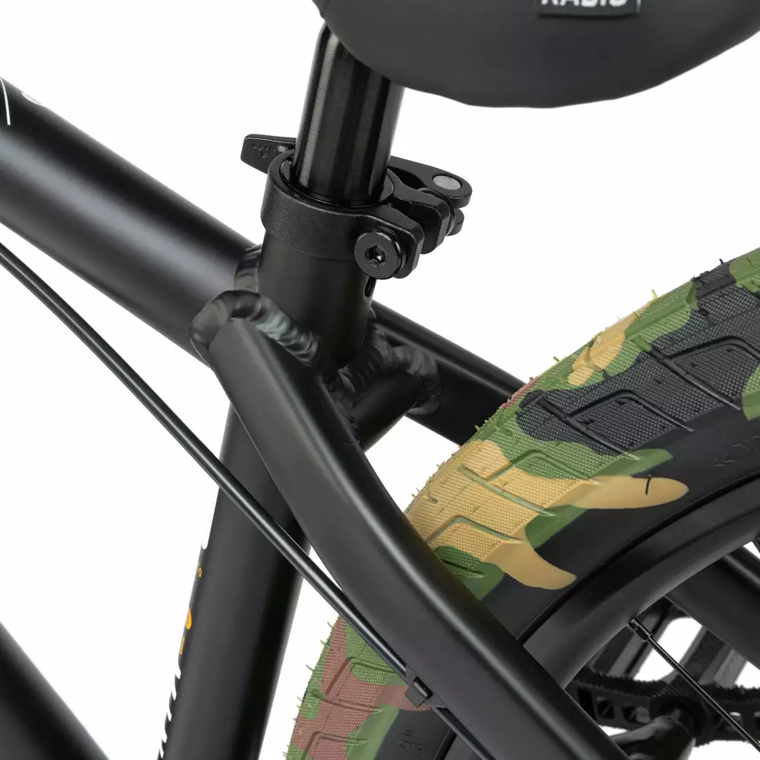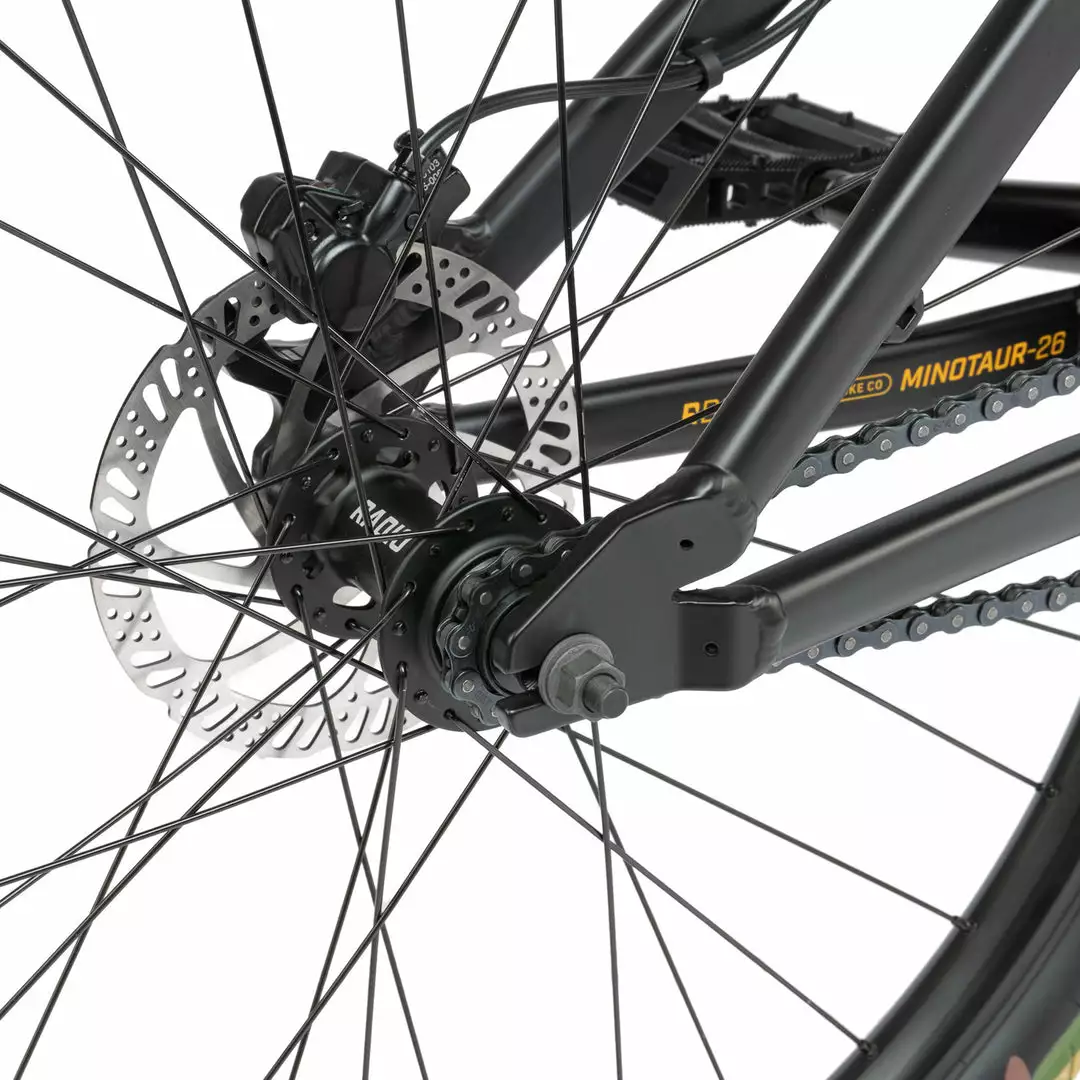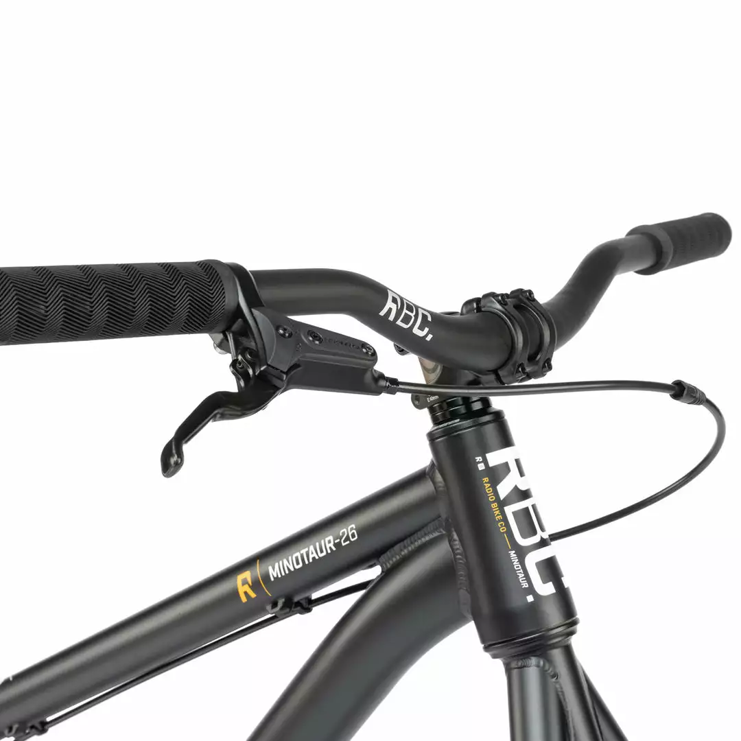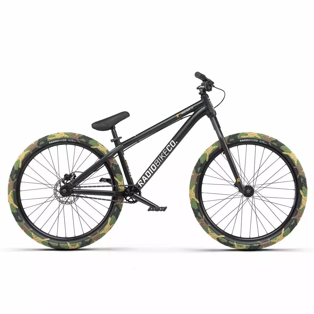 The Radio 2021 Minotaur 26 BMX Dirt Jump Bike-Matte Black is a high performing dirt jump/pump track bike that will allow to reach your potential without completely decimating your wallet. Featuring a chromoly frame and ridged chromoly fork for strength and responsiveness. High quality SaltPlus three piece cranks and a Tektro disc brake round it all out.