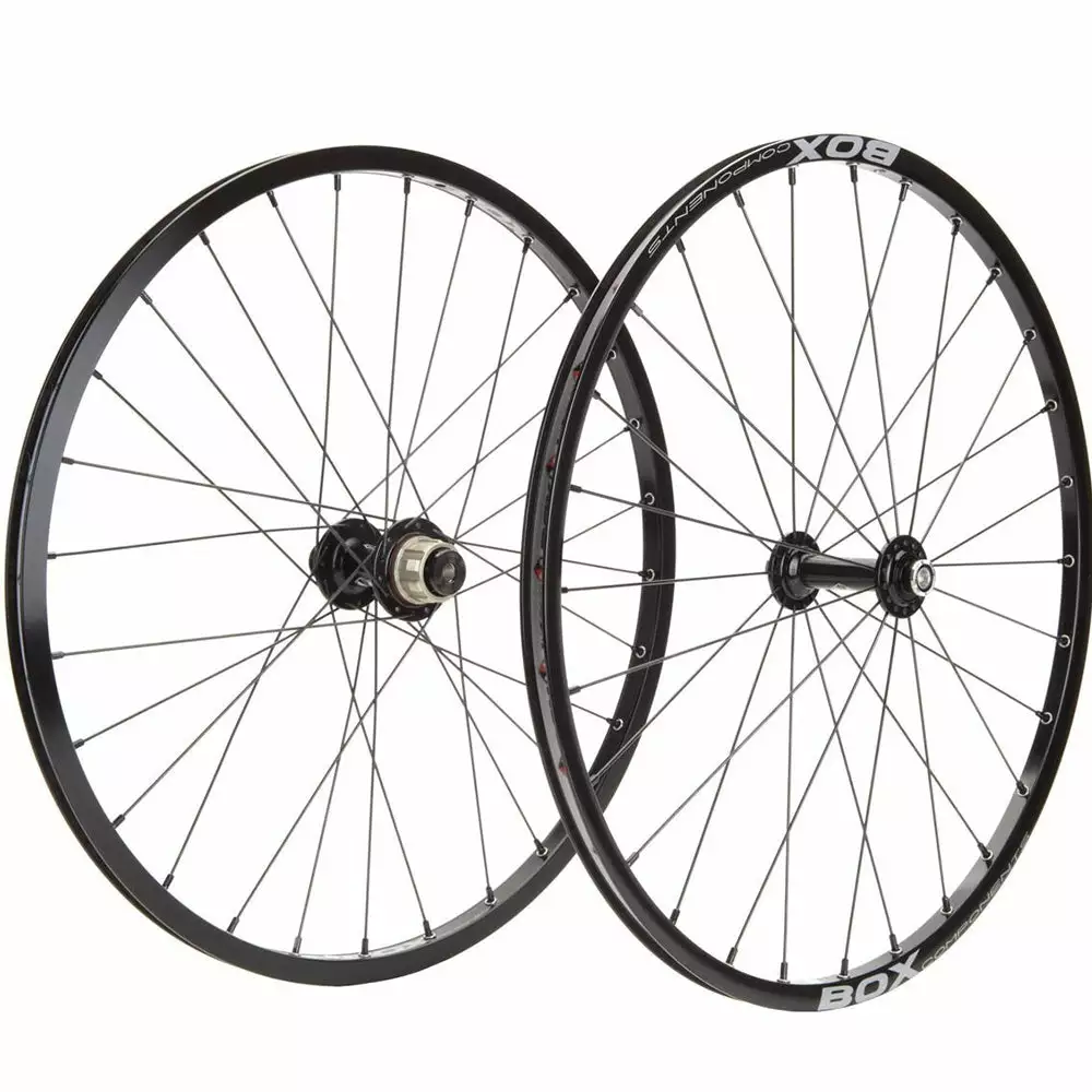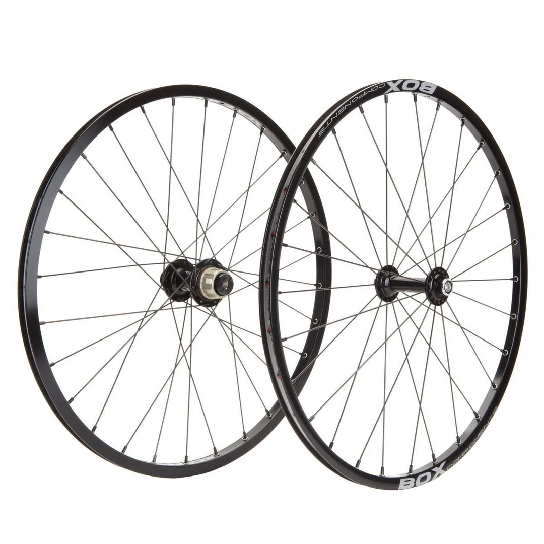 Hand built in Southern California, Box One™ 451 (20 x 1 1/8”) wheels are made with Box One™ front and rear rims and 28-hole Box One™ hubs laced radially front and 3-cross rear with 15 gauge stainless steel spokes and alloy nipples.
