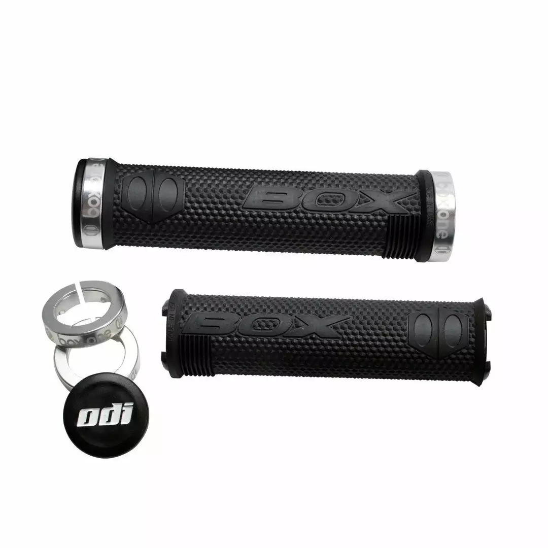 The Box One Lock-On Grips-130mm follow in Box’s design philosophy of removing material from areas where it is not needed. Here, they’ve removed material from non-contact point on the grips and added a little to the thumb contact point for better cushioning. Instead of a fancy design covering most of the grips, these have a minimalized logo with the more important hexagonal textured pattern over 85% of the grips. These are made in the US by ODI and include four ODI Lock-On grip clamps and two Snap Cap end plugs. If you are serious about your components then we recommend using these grips with the Box Genius brake levers as they integrate with the clamp design.