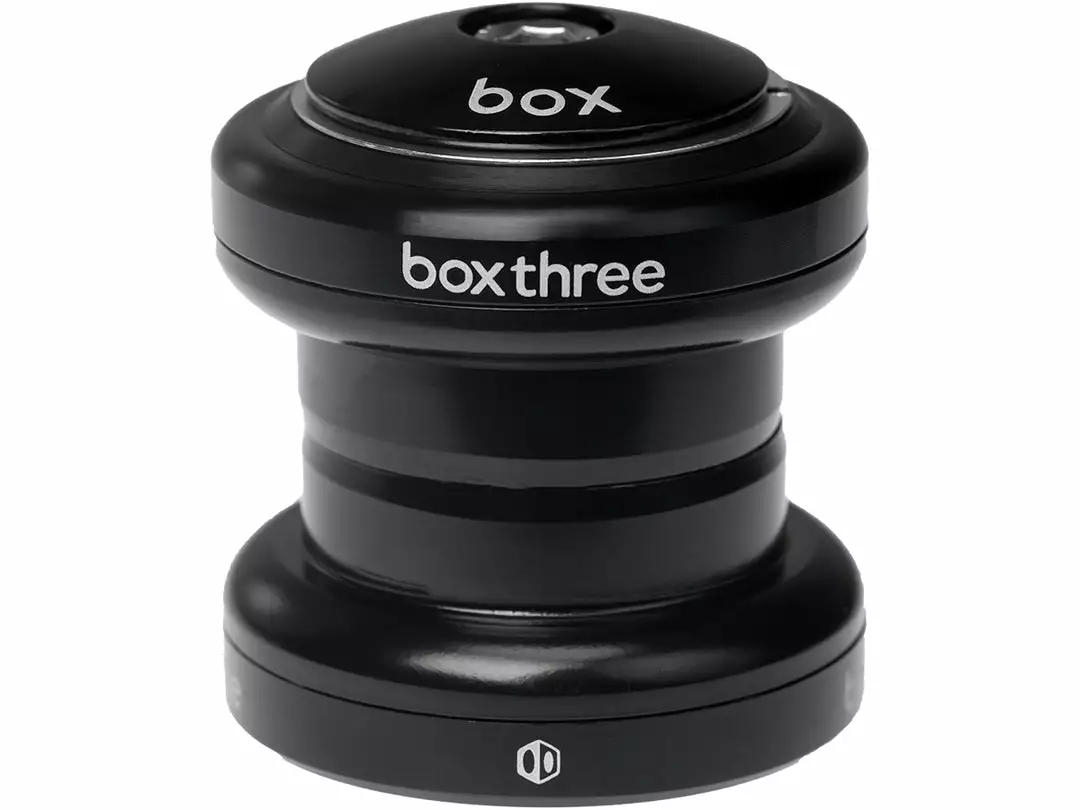 Box Three Steel Press-In Threadless Headset features a hybrid aluminum and steel construction. The top cap, upper bearing cover and lower race are CNC-machined from aluminum alloy while the cups are made from steel. This construction results in a high-quality headset at a lower cost. Each headset is fitted with smooth-rolling, sealed, cartridge bearings and are designed for frames that accommodate external cup style headsets.