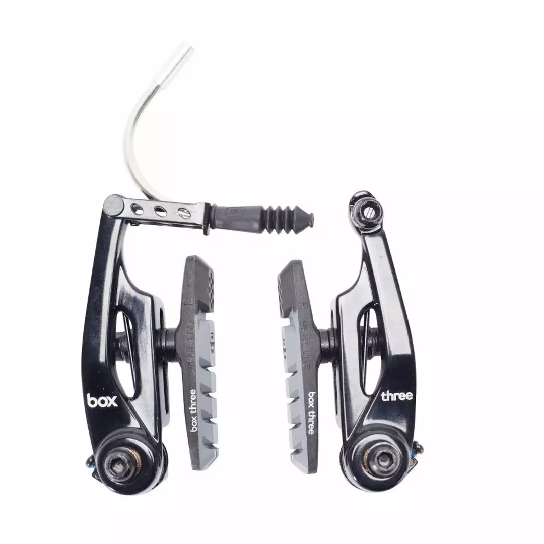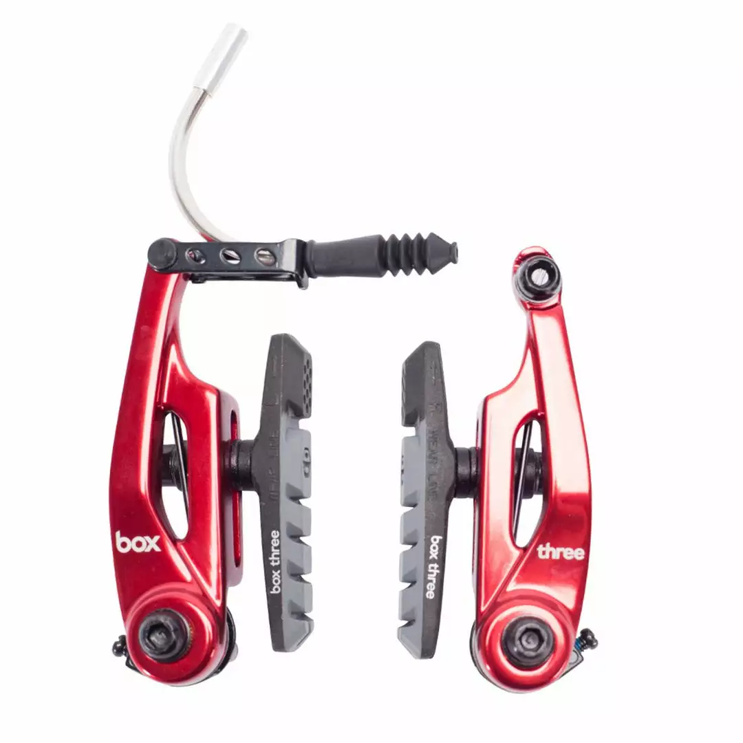 The Box Three V-Brake are made from cold forged aluminum for high-strength and low-weight. The two compound pads have a finned design for better airflow to keep the heat down under hard braking. The tension screws take a simple Philips head driver to make pad adjustments nice-n-easy. These are the brakes to get if you’re looking to break into the realm of high-quality brakes that won’t totally break the bank.