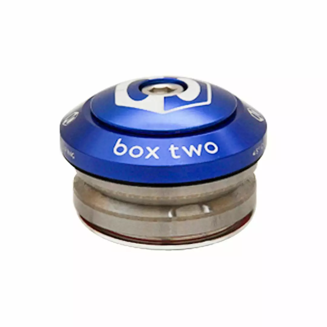 The Box Two Alloy Integrated BMX Headset features an aluminum top cap, CNC-machined bearing cover, and split crown race with super-smooth rolling, precision 45×45 bearings.