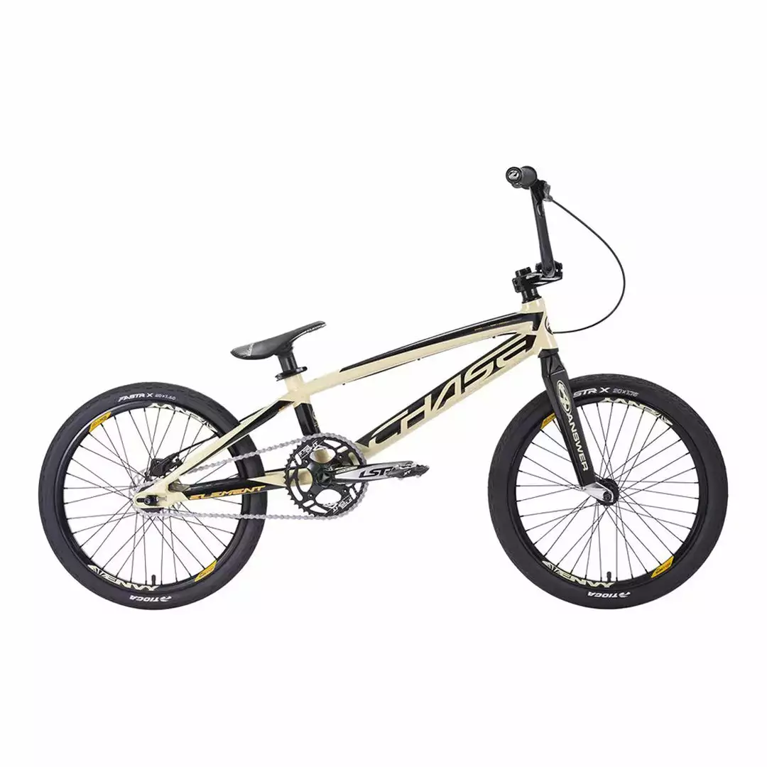 Chase Bicycles have gone and made for you the Chase 2022 Element Pro XL BMX Race Bike-Black/Sand, a pro-level, high-end bike without the astronomical price tag you might have if you built a custom bike yourself. This bike has it all right out of the box. The frame is hydroformed 7005 T6 Alloy with an Answer Dagger Carbon fork sticking out the front. With an Excess crankset, Sun rims, and Tioga Powerblock tires rounding out the package. Stopping power lovingly provided by a hydraulic disk brake system.