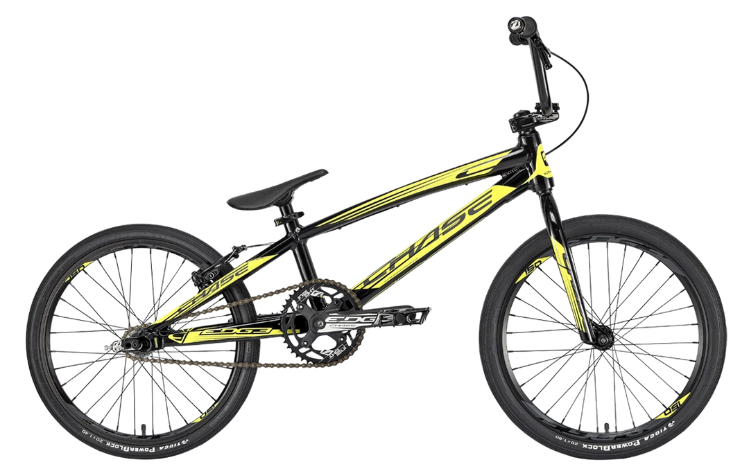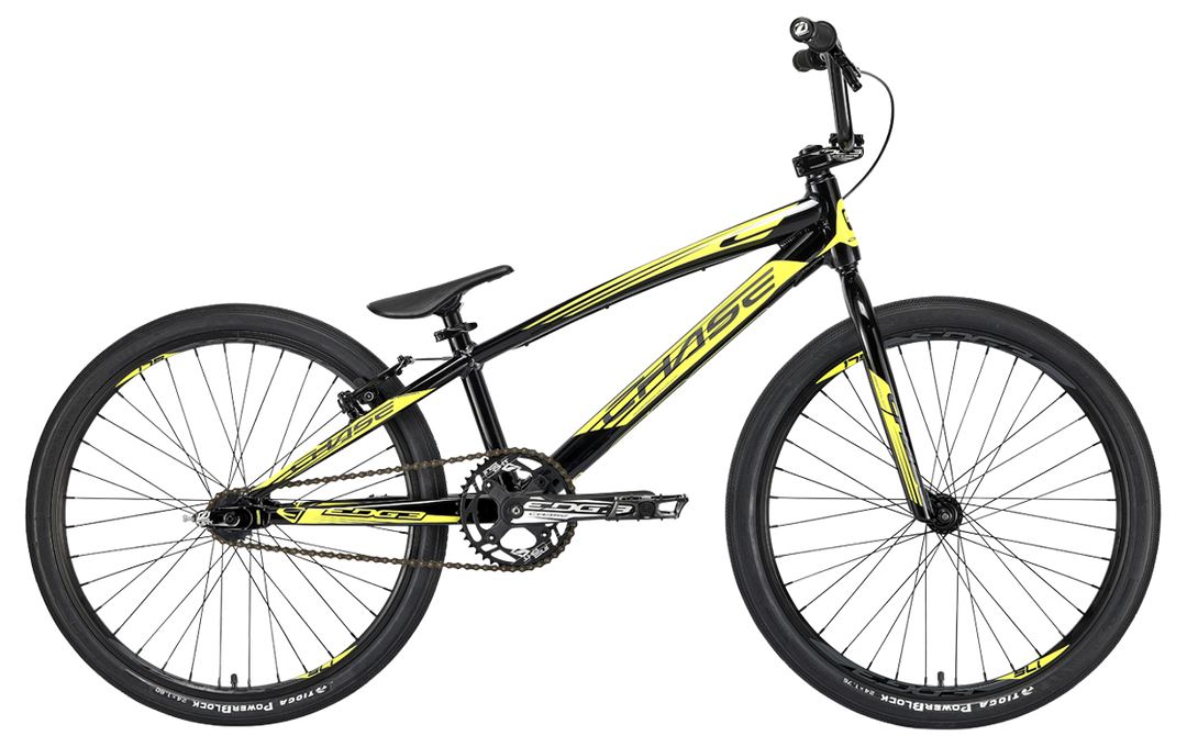 The Chase 2020 Edge Cruiser 24″ BMX Bike-Black/Yellow is a pure BMX race machine. It has been one of the most sought after race bikes in BMX racing due to the history of the company and our attention to detail. Each year we want to improve our design and style and for 2020, we even surpassed our own expectations! The 2020 Chase Edge frame look has changed drastically with a Black and Neon design and this showcases the upgraded Edge frame that has Triple butted Premium Ultralight Alloy Hydroformed tubes on the entire Edge complete bike size range. The Chase Edge has some of the best parts made for a complete BMX race bike: Tioga PowerBlock Tires, a KMC Chain, Tektro brake set, Insight chainring, grips and chain tensioners, and Pivotal seat/seat post combo, as well as a rear cassette hub. All these parts together help give you the Edge over your competition, and to make the 2020 Chase Edge one of the most dialed in complete bikes in BMX. Edge out the competition on and off the track with the new 2020 Chase Edge complete race bike!