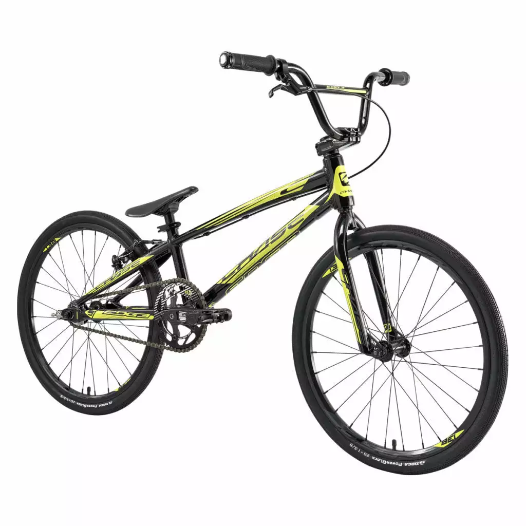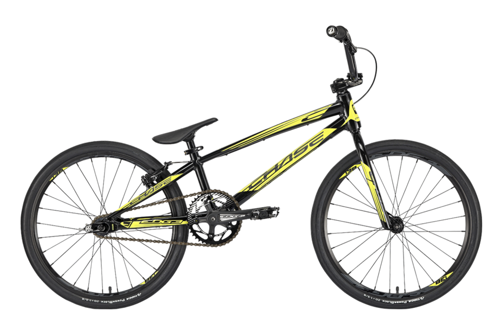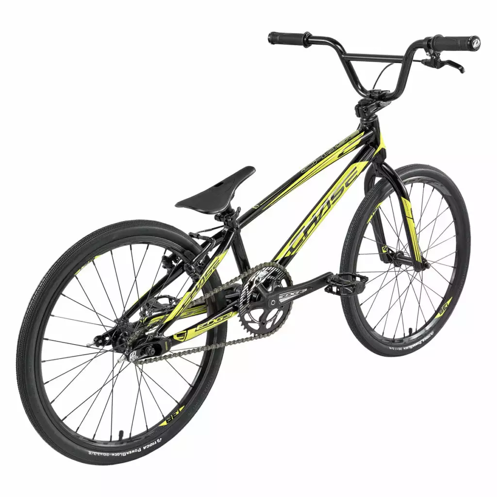The Chase Edge bike is a pure BMX race machine. It has been one of the most sought after race bikes in BMX racing due to the history of the company and our attention to detail. Each year we want to improve our design and style and for 2020, we even surpassed our own expectations! The 2020 Chase Edge frame look has changed drastically with a Black and Neon design and this showcases the upgraded Edge frame that has Triple butted Premium Ultralight Alloy Hydroformed tubes on the entire Edge complete bike size range. The Chase Edge has some of the best parts made for a complete BMX race bike: Tioga PowerBlock Tires, a KMCChain, Tektro brake set, Insight chainring, grips and chain tensioners, and Pivotal seat/seat post combo, as well as a rear cassette hub. All these parts together help give you the Edge over your competition, and to make the 2020 Chase Edge one of the most dialed in complete bikes in BMX. Edge out the competition on and off the track with the new 2020 Chase Edge complete race bike!