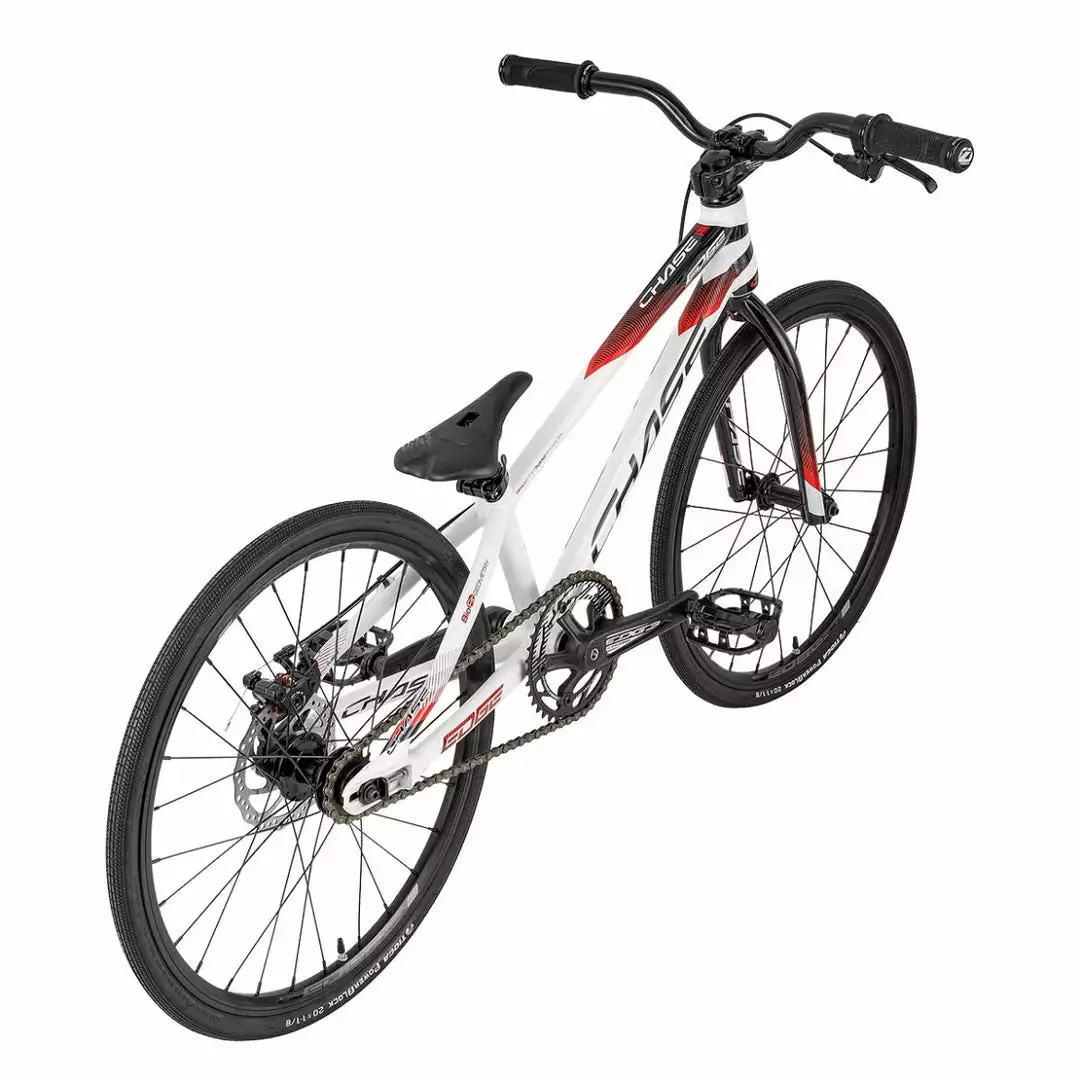 The Chase 2022 Edge Micro BMX Race Bike-White/Redis designed and built for those riders looking to take a deeper, more serious step into racing. Chase brings all their BMX race bike design knowledge to bear in the creation of this excellently valued bike. Open the box and you’ll get a frame that is made of all hydroformed 6061 T6 alloy with integrated chain tensioners and enclosed dropouts. The fork is stiff and reliable chromoly. The bike is fitted with Chase hubs and rims with Tioga PowerBlock rubber to give you all the grip you need while ripping around the track. Rounding out the package is a next level mechanical disc brake system.
