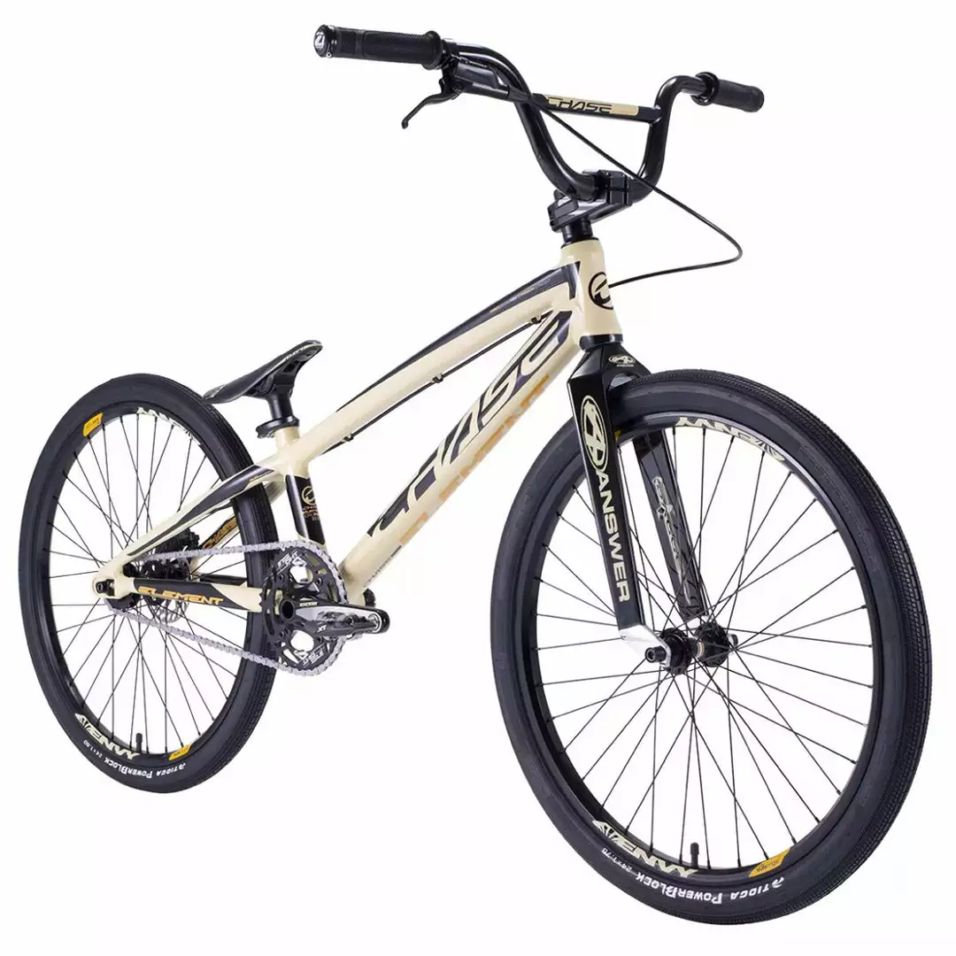 Chase Bicycles have gone and made for you the Chase 2022 Element Cruiser 24″ BMX Race Bike-Black/Sand, a pro-level, high-end bike without the astronomical price tag you might have if you built a custom bike yourself. This bike has it all right out of the box. The frame is hydroformed 7005 T6 Alloy with an Answer Dagger Carbon fork sticking out the front. With an Excess crankset, Sun rims, and Tioga Powerblock tires rounding out the package. Stopping power lovingly provided by a hydraulic disk brake system.