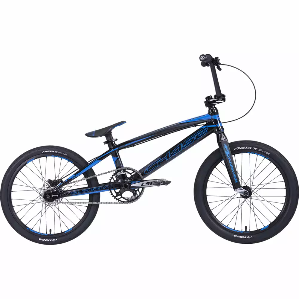 The Chase Element bike has always been about excellence and being a bike built for Pro level racing. For 2020, we looked to our Chase Pro riders Connor Fields and Joris Daudet and asked them what they loved he most about their Chase ACT 1.0 race bikes. They noted how Disc brakes made a huge difference on the race track, how they loved the ease and smoothness of the Press Fit Bottom Brackets, and the talked about the ease of use of the improved rear chain tensioner systems they have on their bikes. So we took all of these features and added them to the 2020 Chase Element bikes. We added a Shimano Hydraulic Disc Brake, a BB86 Press Fit Bottom Bracket on the frame, and we incorpotrated the same Drop out design on the ACT 1 and RSP 4.0 frames onto the Element. We also added in a 31.8mm Chase Handlebar and Top Loading stem, to make this the ultimate Pro level complete race bike. Next we made the bike literally smoother and faster, by adding Tioga FASTR X tires, the only complete bike to come with this Pro level tire in BMX! Matching the speed of the tires is the upgraded rear hub, thats laced up on Sun Ringlé Rims, with the Chase Element Triple Precise clutch system has less drag while offering fast engagement. Other standout features include Elevn Pivotal seat and Aero system post, Excess LSP cranks, Insight 4 bolt chain ring and C.O.G.S. grips, and a KMC Chain. The 2020 Chase Element complete bike is the ultimate complete BMX race bike offered in BMX today!