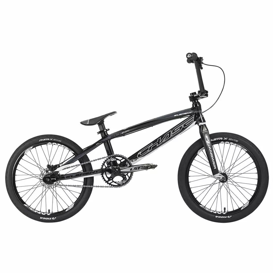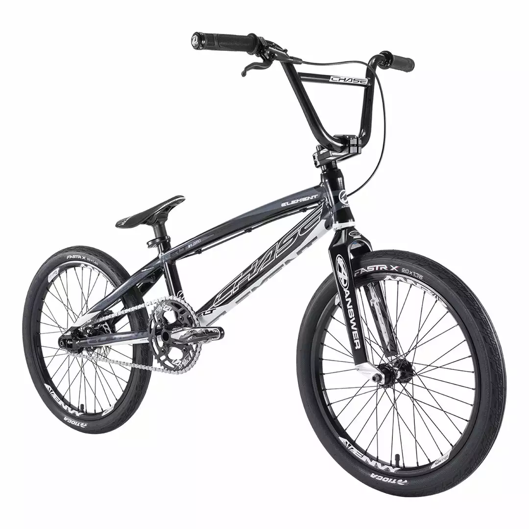 Building a custom Pro level race bike can be a difficult task while trying to stay within a budget. With the Chase 2021 Element Pro XL BMX Race Bike-Black/White, we did all the hard work for you. We wanted to offer a bike that our Chase Factory Pro riders could race right out of the box, while taking into consideration that the cost needs to be realistic for everyday racers who still want the best bike. With the new 2021 Chase Element, we have done just that, offering you the best bike for the price! The 2021 Element utilizes the same geometry as our Championship winning ACT and RSP race frames. The Element frame features Hydroformed and butted tubing, a new integrated chain tensioner / disc brake mounting system, a Press Fit Bottom Bracket, and a 31.8 Handle Bar/Stem combo.
