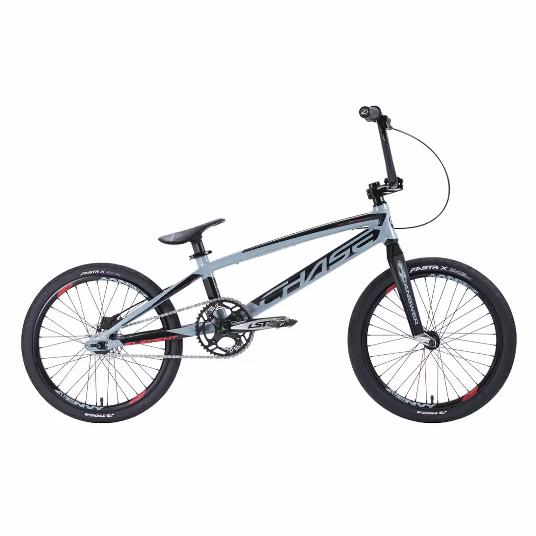 Chase Bicycles have gone and made for you the Chase 2022 Element Pro XXXL BMX Race Bike-Black/Slate, a pro-level, high-end bike without the astronomical price tag you might have if you built a custom bike yourself. This bike has it all right out of the box. The frame is hydroformed 7005 T6 Alloy with an Answer Dagger Carbon fork sticking out the front. With an Excess crankset, Sun rims, and Tioga Powerblock tires rounding out the package. Stopping power lovingly provided by a hydraulic disk brake system.