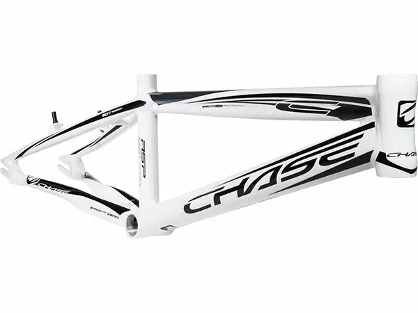 The Chase BMX RSP 2.0 aluminum BMX race frame features refined integrated head tube shape that directs the brake cable routing through it. The Brake cable runs through the head tube, alongside the steer tube, into the top tube and the cable exits in the rear of the top-tube. This gives the frame an ultra-smooth look while hiding the cable (cable housing included and threaded into frame). The RSP 2.0 also features a refined bottom bracket shell to offer a stiffer design and reduce flex. Chase has also changed the seat stay brace into a unique curve to increase stiffness there as well.