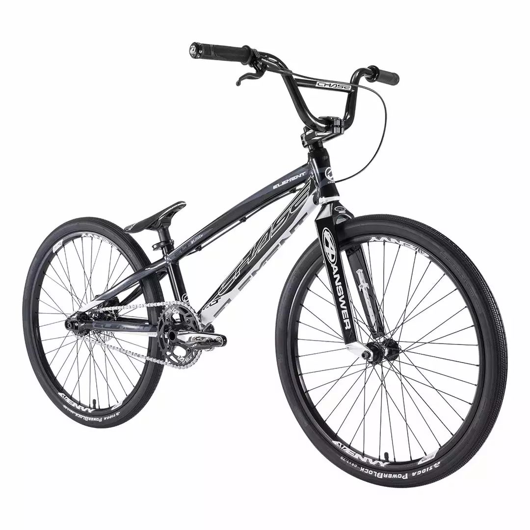 Building a custom Pro level race bike can be a difficult task while trying to stay within a budget. With the Chase 2021 Element Cruiser 24″ BMX Race Bike-Black/White, we did all the hard work for you. We wanted to offer a bike that our Chase Factory Pro riders could race right out of the box, while taking into consideration that the cost needs to be realistic for everyday racers who still want the best bike. With the new 2021 Chase Element, we have done just that, offering you the best bike for the price! The 2021 Element utilizes the same geometry as our Championship winning ACT and RSP race frames. The Element frame features Hydroformed and butted tubing, a new integrated chain tensioner / disc brake mounting system, a Press Fit Bottom Bracket, and a 31.8 Handle Bar/Stem combo.