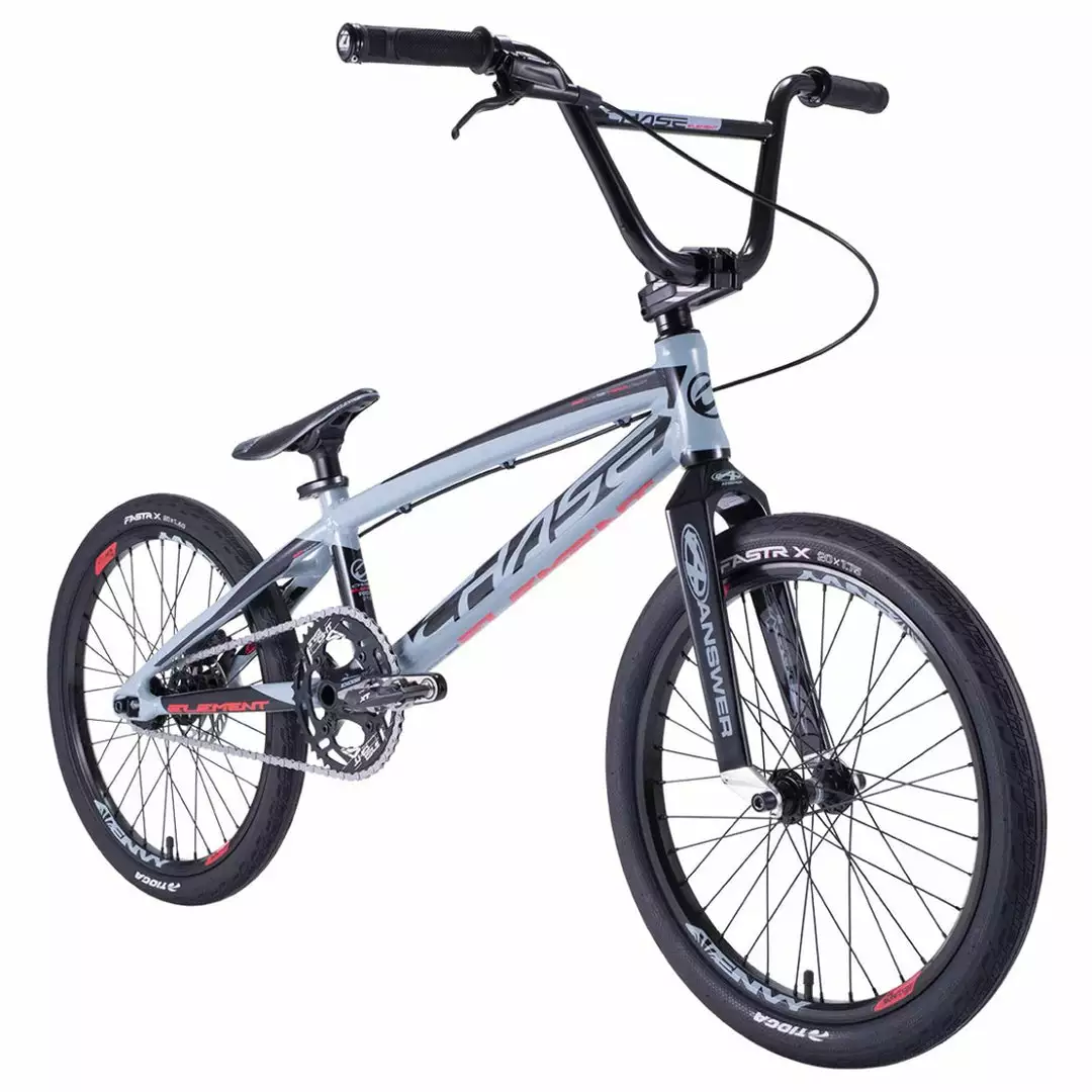 Chase Bicycles have gone and made for you the Chase 2022 Element Pro XL BMX Race Bike-Black/Slate, a pro-level, high-end bike without the astronomical price tag you might have if you built a custom bike yourself. This bike has it all right out of the box. The frame is hydroformed 7005 T6 Alloy with an Answer Dagger Carbon fork sticking out the front. With an Excess crankset, Sun rims, and Tioga Powerblock tires rounding out the package. Stopping power lovingly provided by a hydraulic disk brake system.