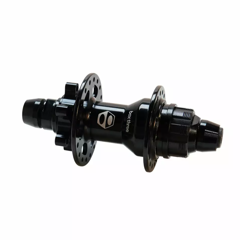 The Box Three Pro Disc Rear Hub-10mm-36H-Black is the budget friendly solution for riders looking to upgrade their rear disc hub, or looking to finally make the switch to disc brakes. Features a 6 bolt disc brake rotor mount. With an aluminum shell, 4-pawl, 120-points of engagement, and 10mm steel axle it falls right into the middle of the strength-weight-cost Venn diagram.