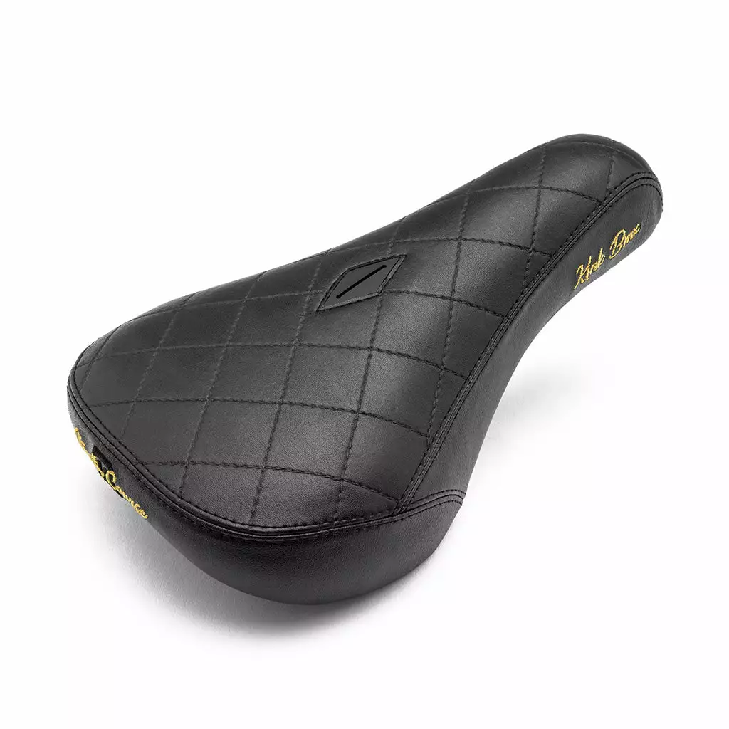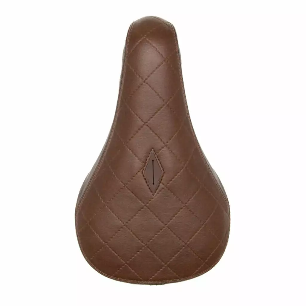 The Kink Splendor Pivotal Seat at J&R Bicycles features a durable faux leather four-panel cover and comfy extra-thick foam padding where you need it most. Stitching details on the top and embroidered logos on side and rear panels pull this classic look together. To top in all off, Kink added a custom diamond shaped Pivotal patch for easy installation with a 6mm Allen key.