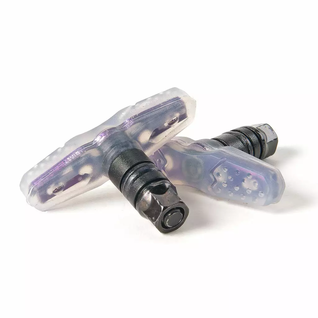 The Salt Plus Propeller Brake Pads at J&R Bicycles are crafted from a high-quality soft rubber compound that offers superior stopping power and less wear. These mid-length brake pads have a clear finish that makes them a great match whether you have black or colored rims. All required hardware for installation (bolts, etc.) are included.