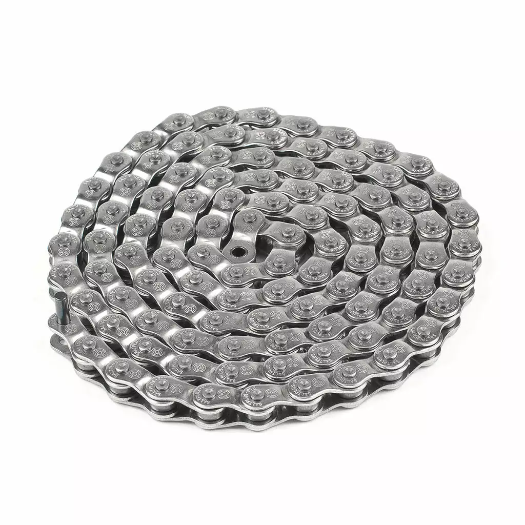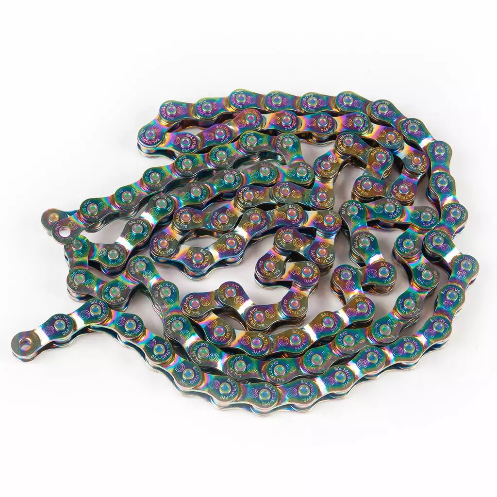 The Salt Plus Warlock Half-Link Chain-1/8 at J&R Bicycles are so lightweight you would never know that they are constructed from high-strength steel. Weighing less than a pound, this half-link chain is made with thicker plates and stronger pins for extra durability. Treated with chromium for extra surface protection, this chain was built to last.