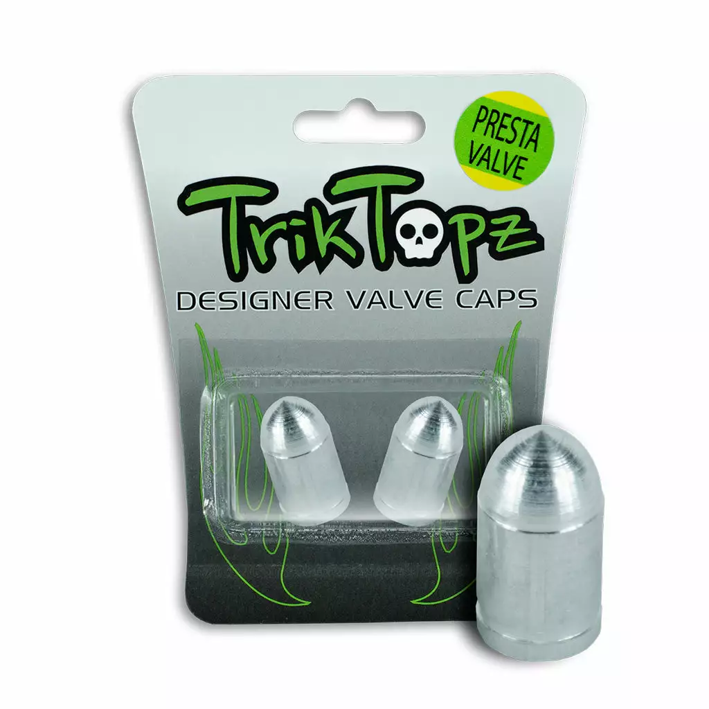 The Trik Topz Bullet Presta Valve Cap at J&R Bicycles are a fun way to add a bit of customized flare to your Presta-style valves by replacing the stock cap. Shaped like bullets and made from durable aluminum these valve caps are way cooler than the ones your bike came with. Sold in pairs and made in the USA.