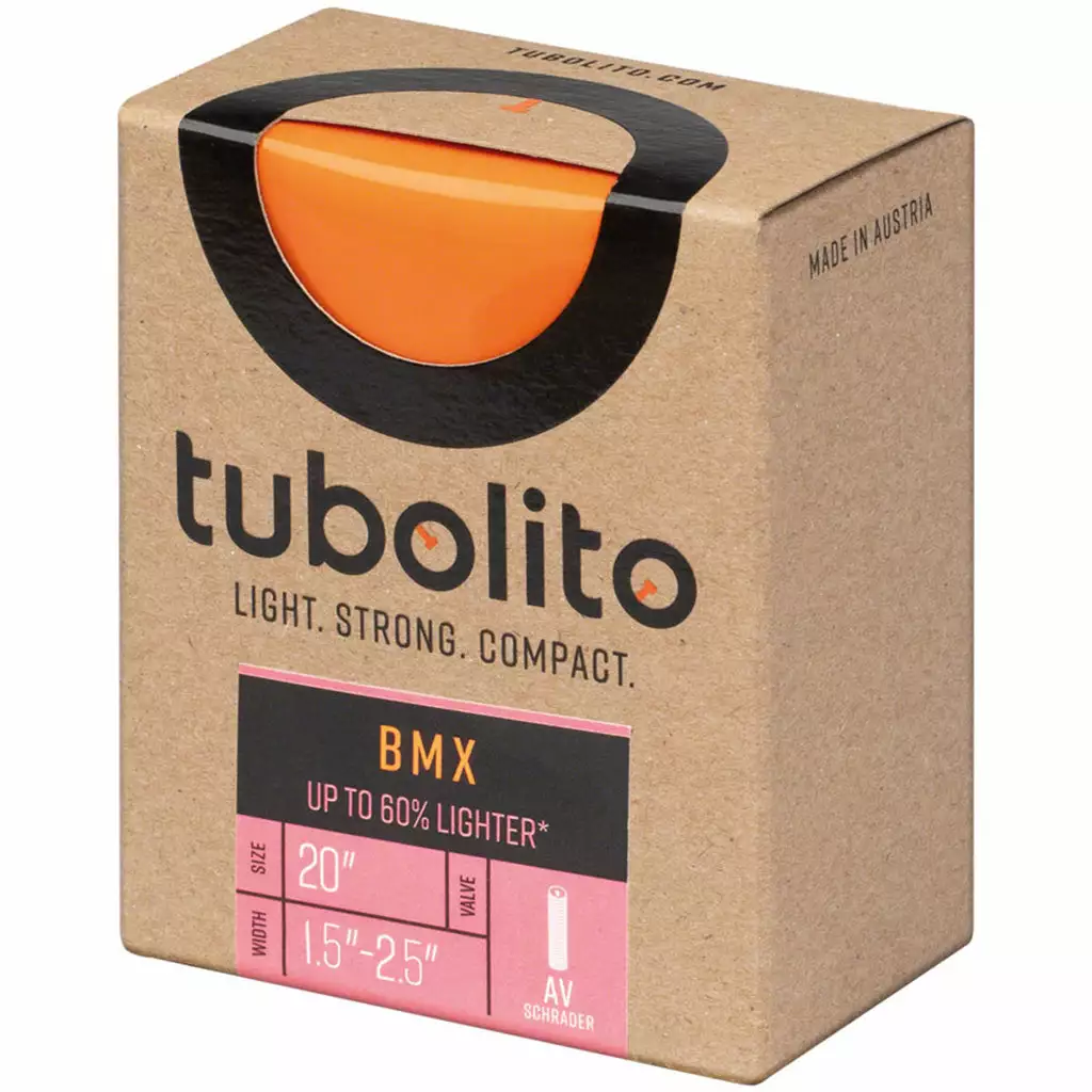 The Tubolito Tubo Lightweight Schrader Valve Tube-20×1.50-2.50 packs tons of toughness and puncture resistance in a compact and super lightweight design. This tube is about 50% smaller and twice as strong as most tubes on the market. This low weight gives you bigger ups on your jumps and keeps you rolling fast. For use with both disc and rim brakes.