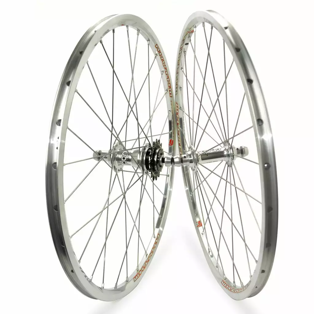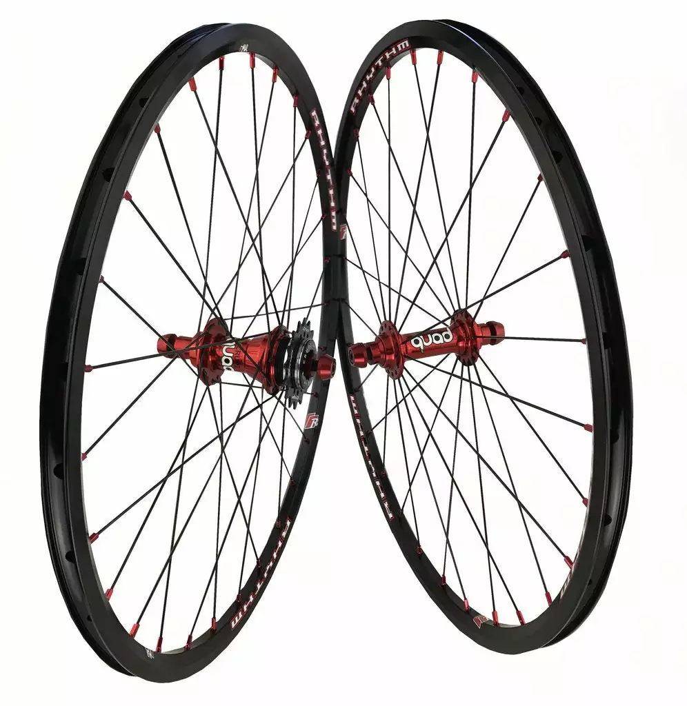 Crupi’s New Expert Cruiser race wheels feature our new Quad 28H hubs made from 6061-T6 aluminum with 3/8″ chromoly center axles for increased strength and stiffness, precision sealed bearings throughout and a Shimano compatible aluminum driver. Laced with 15G spokes and alloy nipples to 28H Rhythm Section 24 x 1-3/8″ rims, extruded from 6061-T6 aluminum for strength and durability. Includes 16T aluminum cog.