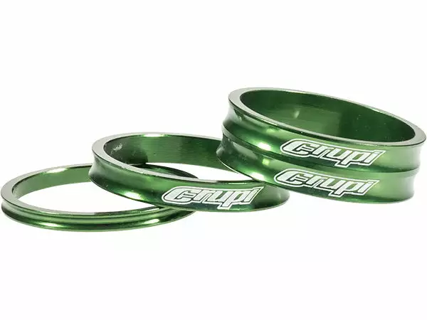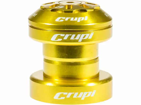 High quality sealed bearing threadless headset for threadless forks. Features aluminum anodized cups with Crupi graphic etching. Complete with star nut, color match top cap and color match aluminum headset spacers. Includes 1 x 3mm, 1 x 5mm and 1 x 10mm spacer.