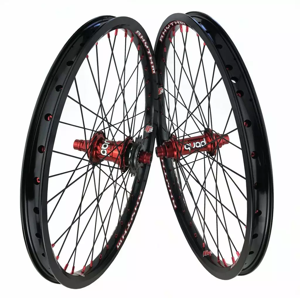Crupi’s New Pro36 race wheels feature our new Quad 36H hubs made from 6061-T6 aluminum with 10mm chromoly axles for increased strength and stiffness, precision sealed bearings throughout and a Shimano compatible chromoly driver. Laced with 14G spokes and alloy nipples to 36H Rhythm Section 20 x 1.75 rims, extruded from 6061-T6 aluminum for strength and durability. Includes 16T aluminum cog.