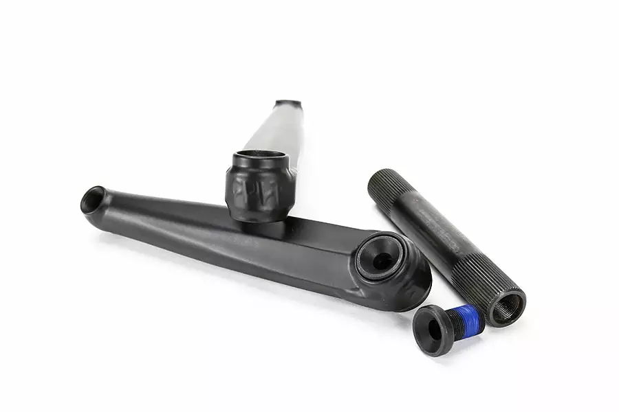 The DEATHROW Cranks are made in the USA from heat-treated and swedged tubular 4130 chromoly arms, featuring wrap-around spindle and pedal gussets for increased strength. 22mm hollow 48 spline, heat-treated, 4130 chromoly spindle and hollow flush mount spindle bolts.Â