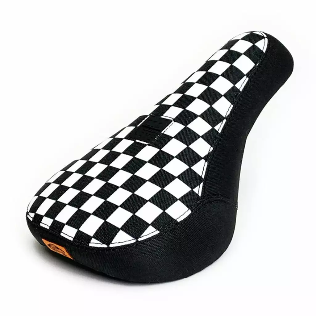 Cult x Vans Slip-On Pro Pivotal BMX Seat-Checkerboard is a mid-size seat featuring design elements that pay homage to the classic Vans Slip-On shoes. Just the right amount of padding is covered by a durable three-panel top layer with seamed side panels. The classic Vans Off The Wall logo tag is stitched to the rear panel to pull the look together. Compatible with pivotal seat posts.