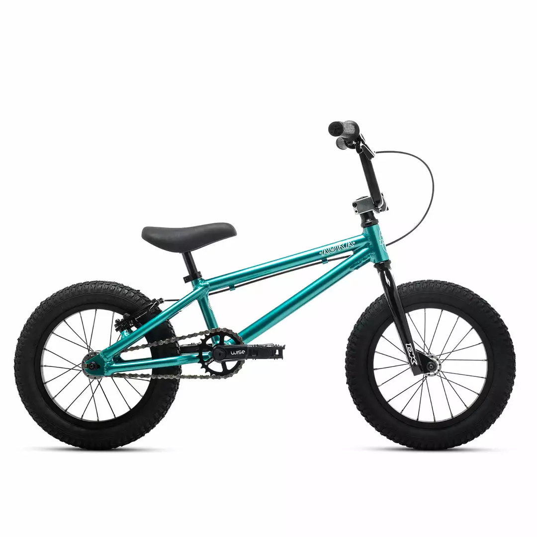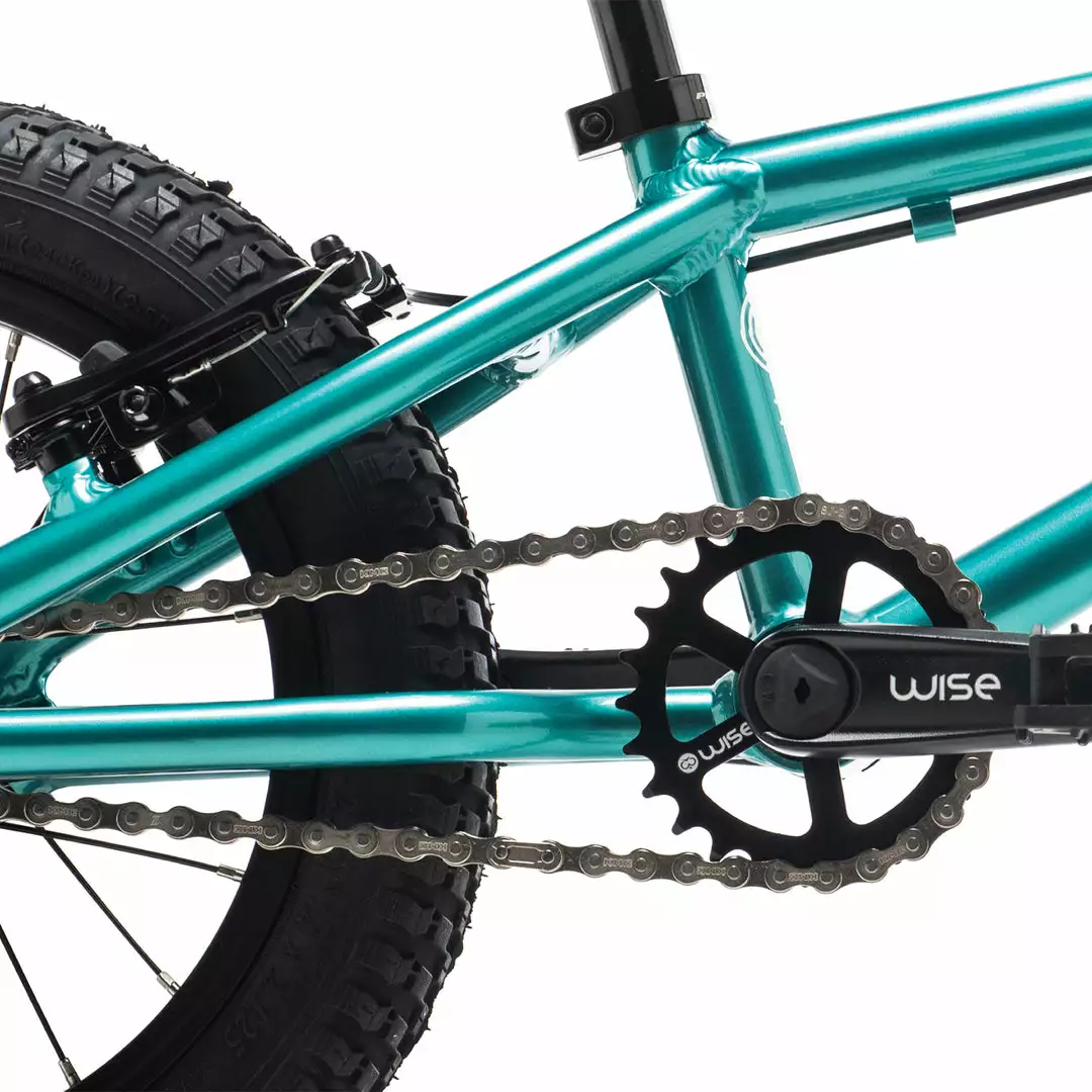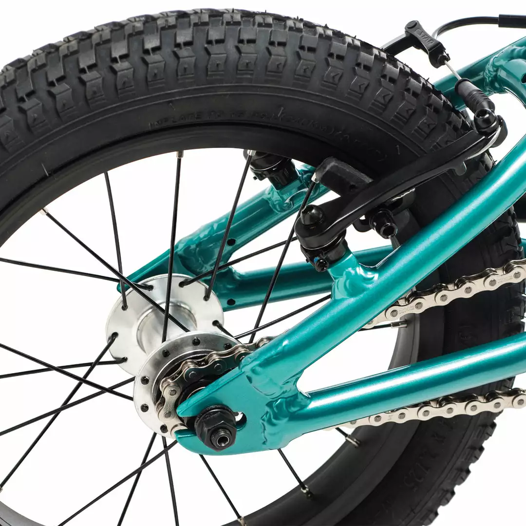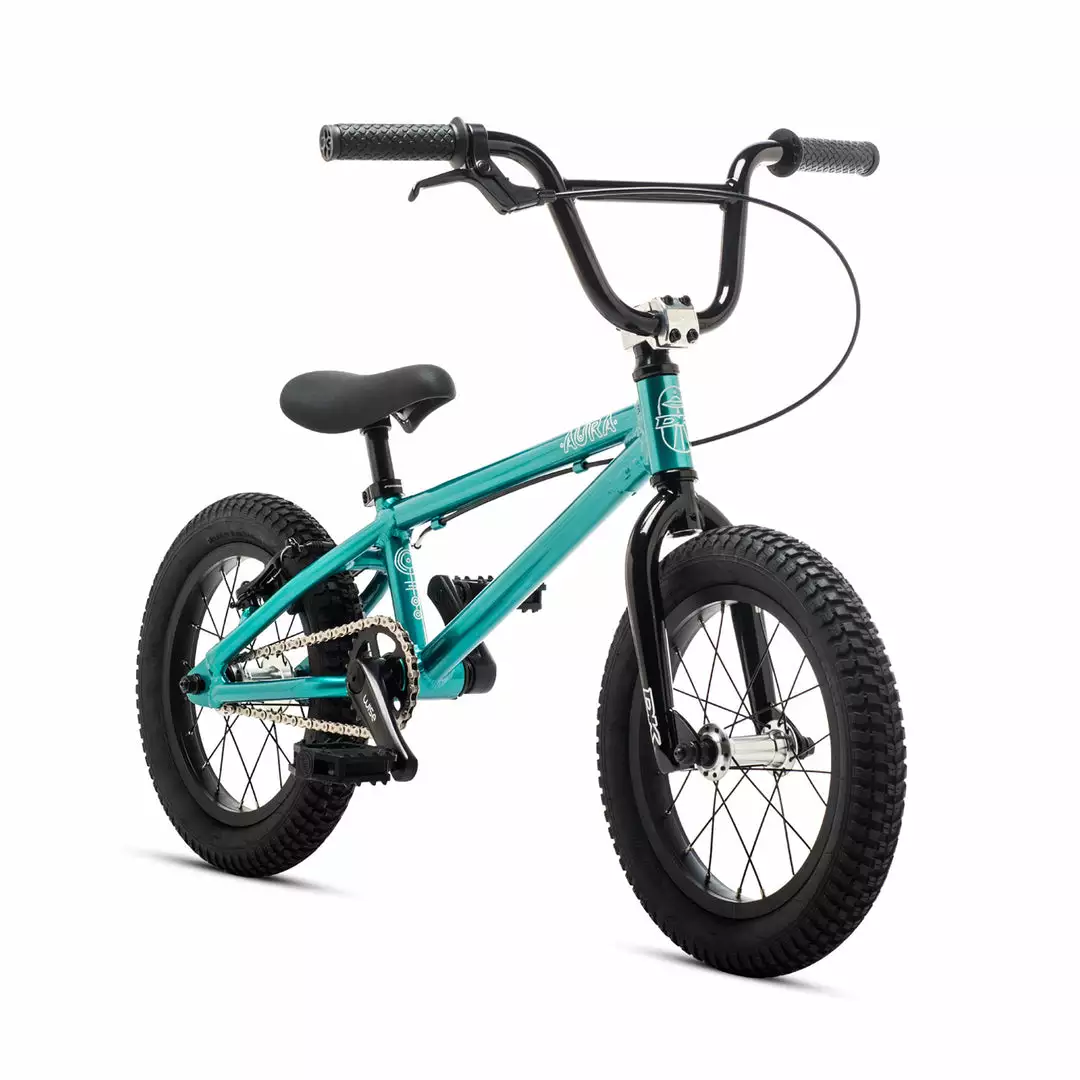 Ready to shred. The new DK Aura 14” has been upgraded for serious BMX with a cassette rear hub and hand-operated linear V-brakes for a balance of fun and safety. Built on a lightweight aluminum frame with scaled down components to fit your little rider, the 14-inch wheel size is the perfect next step after a balance bike. The Aura 14” is the bike your kid will always remember.
