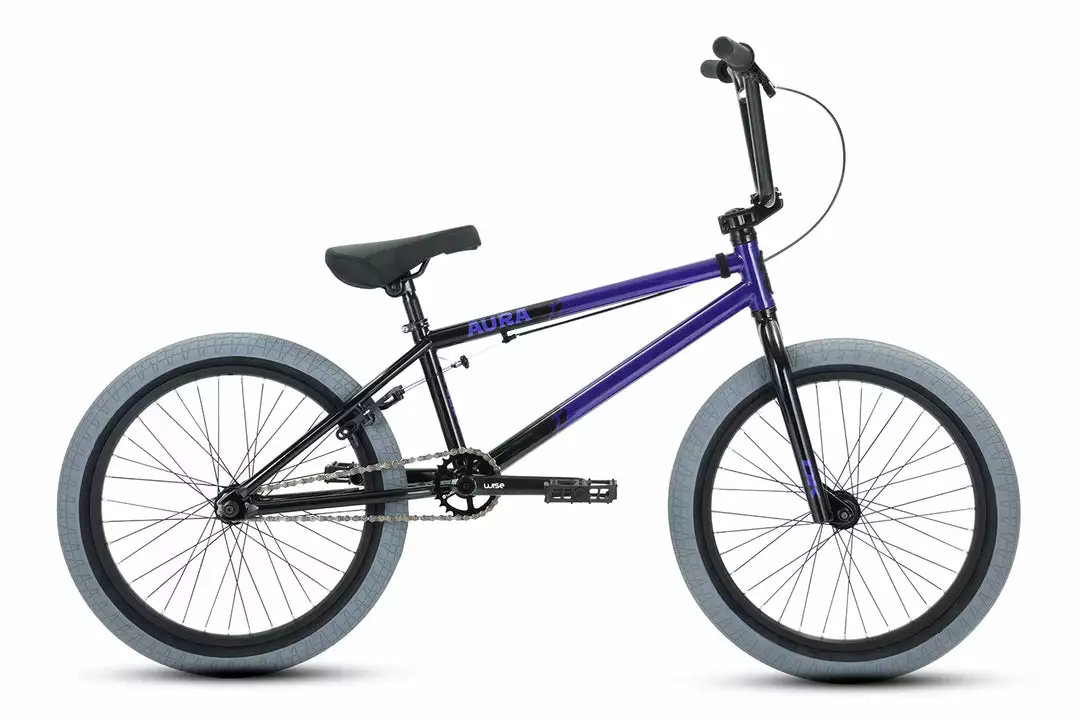Moving up in the ranks of the Aura collection, the DK Aura 20” is for that rider graduating to the full-sized class. With a shorter 20” top tube length and lower “stand over” height, the Aura 20” is sized down for smaller riders, but features 20” wheels for real world BMX action. The most affordable 20” bike in the DK line comes in three high impact color schemes and is packed with features that make it look, feel, and ride like it costs much more. 2.3” wide tires offer monster truck traction, and on trend 8.8” bars keep you riding tall. DK grips and PC pedals are a nice touch, and the Wise railed seat is a more significant option than many in this price range. At the heart of the Aura 20”, a high-tensile steel frame, supported by chromoly 3-piece cranks and fork steer tube make for a durable, quality ride at a price that is easy to get a hold on.