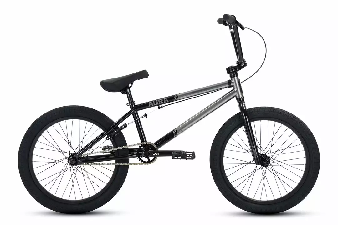 Moving up in the ranks of the Aura collection, the DK Aura 20” is for that rider graduating to the full-sized class. With a shorter 20” top tube length and lower “stand over” height, the Aura 20” is sized down for smaller riders, but features 20” wheels for real world BMX action. The most affordable 20” bike in the DK line comes in three high impact color schemes and is packed with features that make it look, feel, and ride like it costs much more. 2.3” wide tires offer monster truck traction, and on trend 8.8” bars keep you riding tall. DK grips and PC pedals are a nice touch, and the Wise railed seat is a more significant option than many in this price range. At the heart of the Aura 20”, a high-tensile steel frame, supported by chromoly 3-piece cranks and fork steer tube make for a durable, quality ride at a price that is easy to get a hold on.