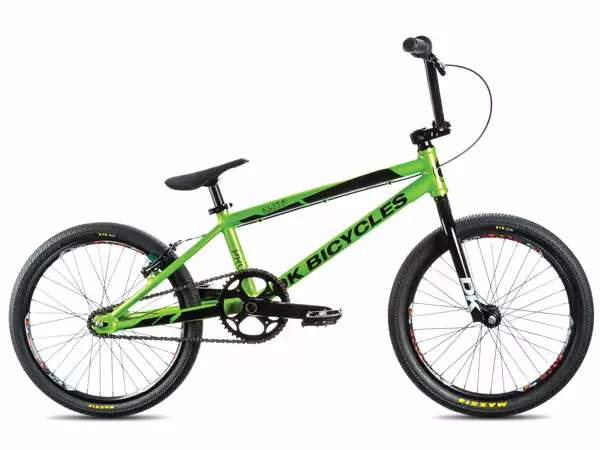 The DK Elite Pro is a new model for 2013 featuring a 7005 series aluminum frame, DK 4130 CrMo race forks, sealed cassette hubs and sealed outboard bearing bottom bracket. Top notch.