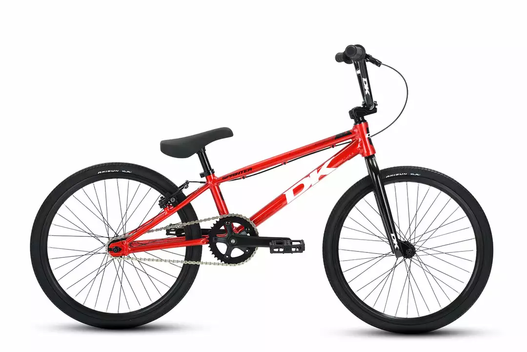 The new DK Sprinter Series bikes are designed for serious BMX racing at prices that will keep your budget on track. All the Sprinter models start with a proven 6061 aluminum frame: Light, responsive, and sturdy enough to withstand the rigors of BMX. On the front end of each Sprinter, you’ll find chromoly forks that can handle repeated harsh landings and keep you running straight out of the gate. All the Sprinters have sealed bearings throughout, linear braking systems, and alloy cranks.20×1-3/8” wheel set on the 2019 DK Sprinter Expert. SUGGESTED RIDER SIZE: 4′ 6″- 5′ 2″