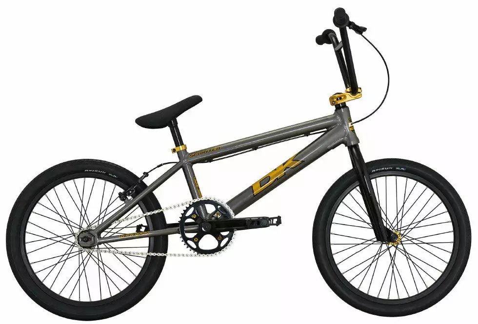 The DK 2017 Sprinter Pro BMX Bike-Charcoal/Gold is a solid mid-level BMX race bike with an entry level price. Sealed bearing hubs, double wall rims, integrated sealed cartridge bearing headset and more make this a serious contender for any comer to the race track.