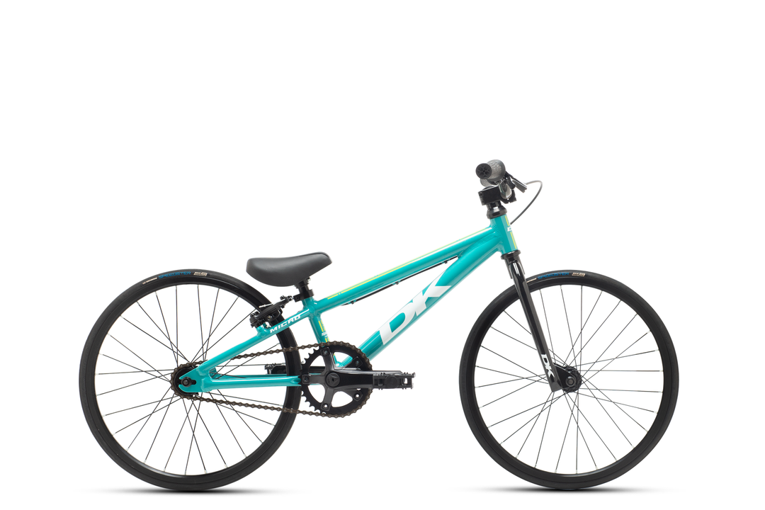The DK 2021 Swift Micro BMX Racing Bike-Teal is an entry-level ride designed for those ready to take their first steps into the world of BMX racing, but not quite ready to invest in the DK 2021 Sprinter Micro. With a 6061 alloy frame and a modest weight of just 16.3lbs, there is a lot on offer for such an affordable price. 18″ wheels and a 16.25″ top tube make this a great first bike for the littlest racers in your BMX family.
