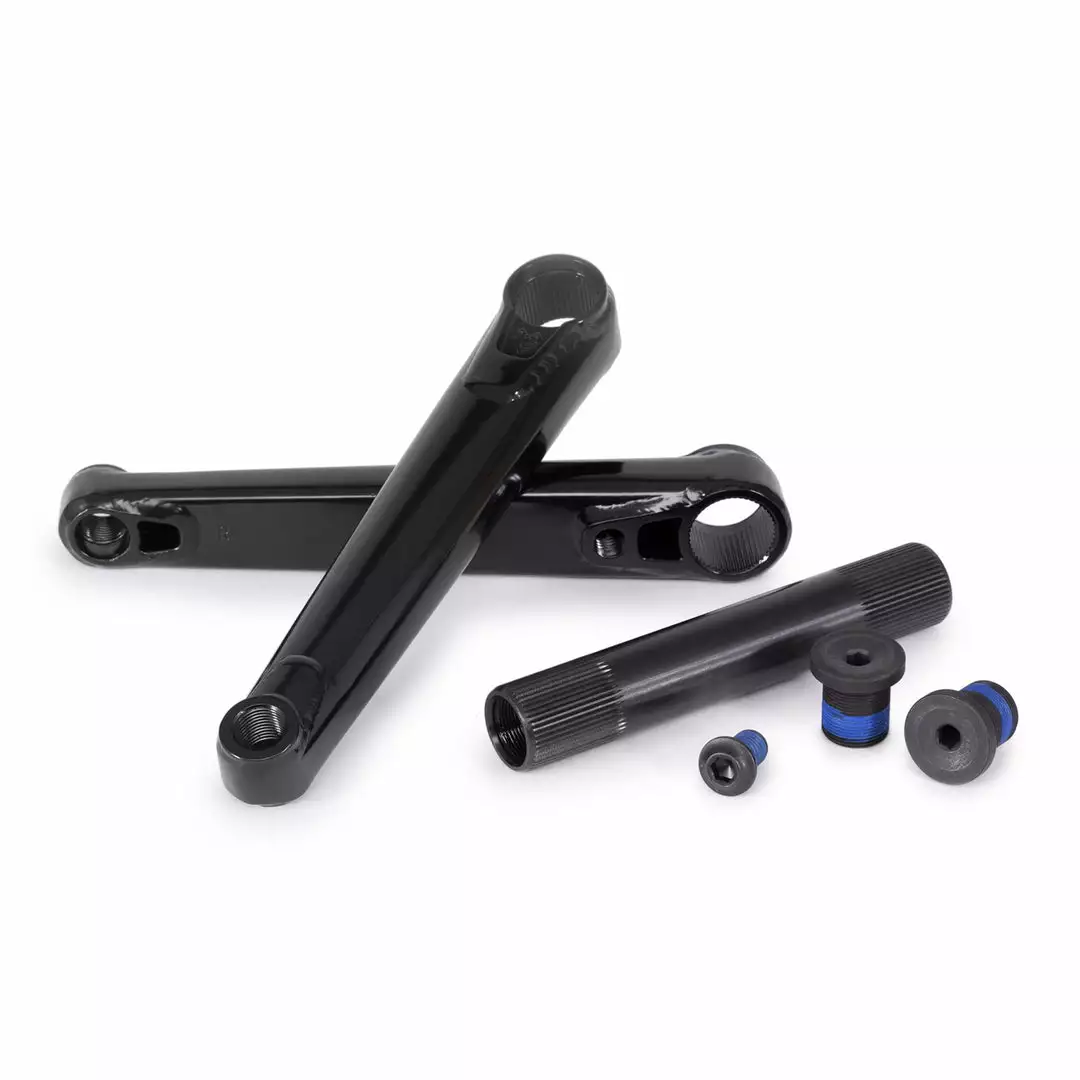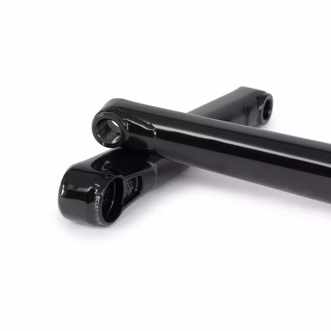 With an oversized super-hollow 24mm spindle, the Eclat Onyx 3-Piece BMX Cranks are the cranks of choice for Eclat Pro Rider Devon Smillie. Built from heat-treated 4130 Chromoly, these super strong cranks can be setup for either Left- or Right-hand drive, and the investment casted pedals and spindle boss can stand up to the stress and torque of the most demanding riders out there today.
