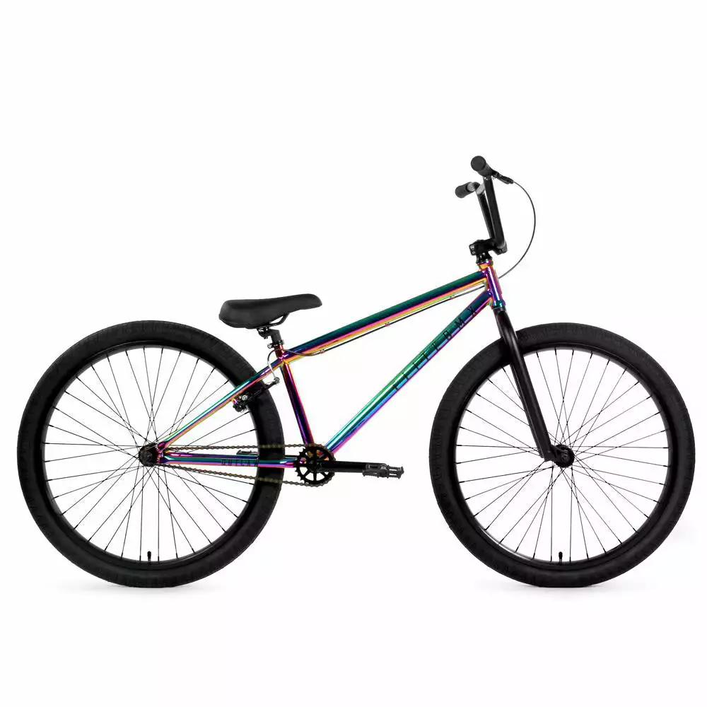 The Elite BMX Outlaw 26″ BMX Freestyle Bike-Neo Chrome features a sealed bottom bracket for zero to easy maintenance, a three-piece crank for smooth pedaling, and a 4130 chromoly frame. The two piece handlebars have a 8.75 inch rise, while 26 inch tires round out the package.