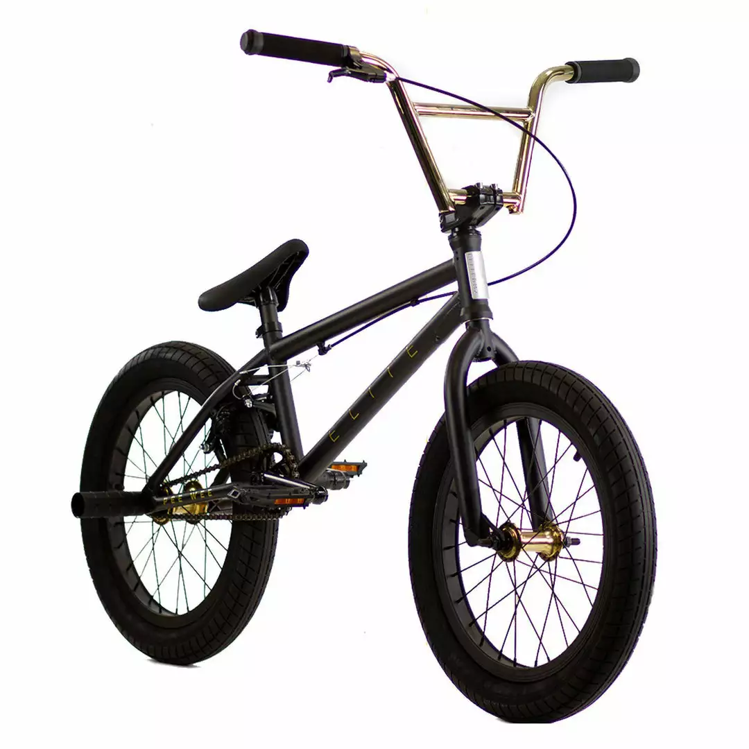 The Elite BMX Pee Wee 18″ BMX Bike-Black Gold will get your kid riding in the park or around town right out of the box on a proper BMX freestyle bike. If they aren’t taken with the idea of riding a real life BMX bike, then perhaps those fancy golden handlebars will do the trick! A huge step above a department store bike, this thing has a lot of strong, lightweight chromoly including the fork, stem, handlebars, and 170mm 3-piece cranks. Even the Tektro brakes are alloy. This bike is a great value that not only looks good, but IS good.